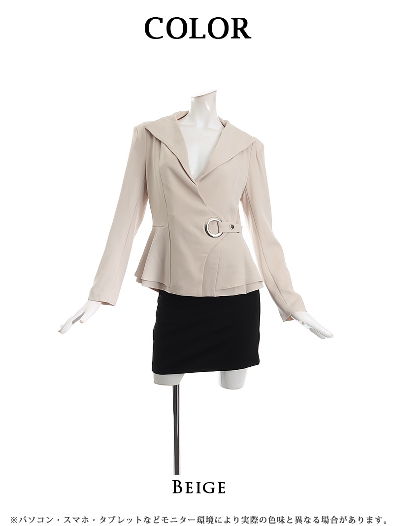 キャバスーツ フォーマルスーツ ペプラム 膝丈スーツ 制服 ベージュ Belsia.LUX(S/M/L/XL)(ベージュ) [500493]