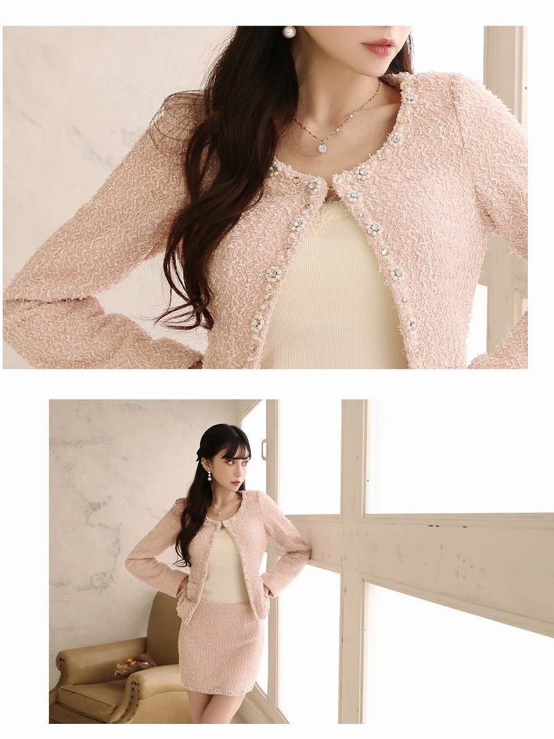 キャバスーツ ピンク ツイードスーツ フォーマルスーツ キャバスーツ ノーカラー Belsia(S/M/L)(ピンク) [500281]