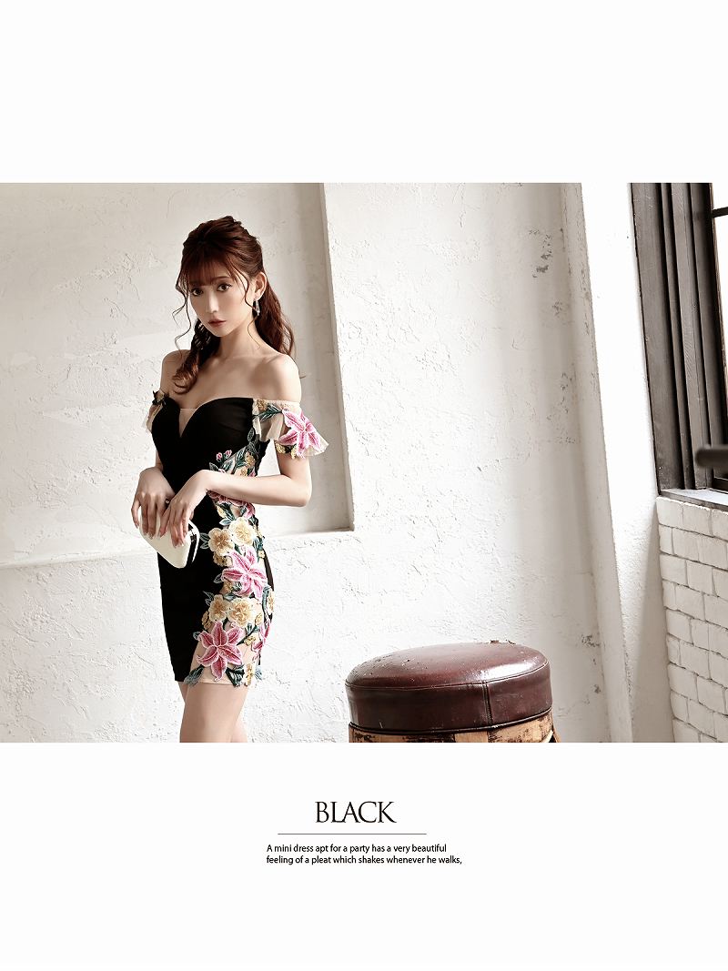 キャバドレス ミニ 花柄 オフショル シアー sexy 谷間 Belsia(XS/S/M/L)(ホワイト/ブラック) [505957]