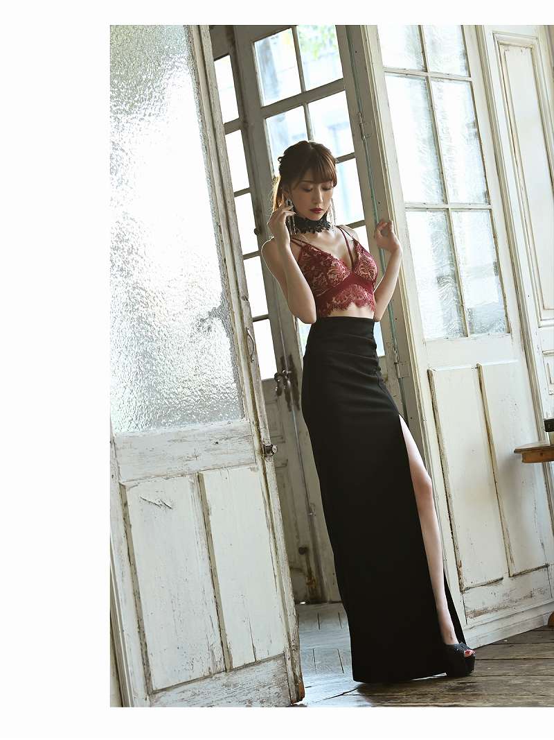 ☆ランジェリー風のデザインがsexyすぎる上半身は谷間をがっつりアピールしつつへそ出しカッティングでお客様をドキドキさせちゃいます!!またスカートのウエスト部分にはギャザーを施しタイトなシルエットながらお腹の肉感は拾いすぎないデザインが嬉しいポイント!!