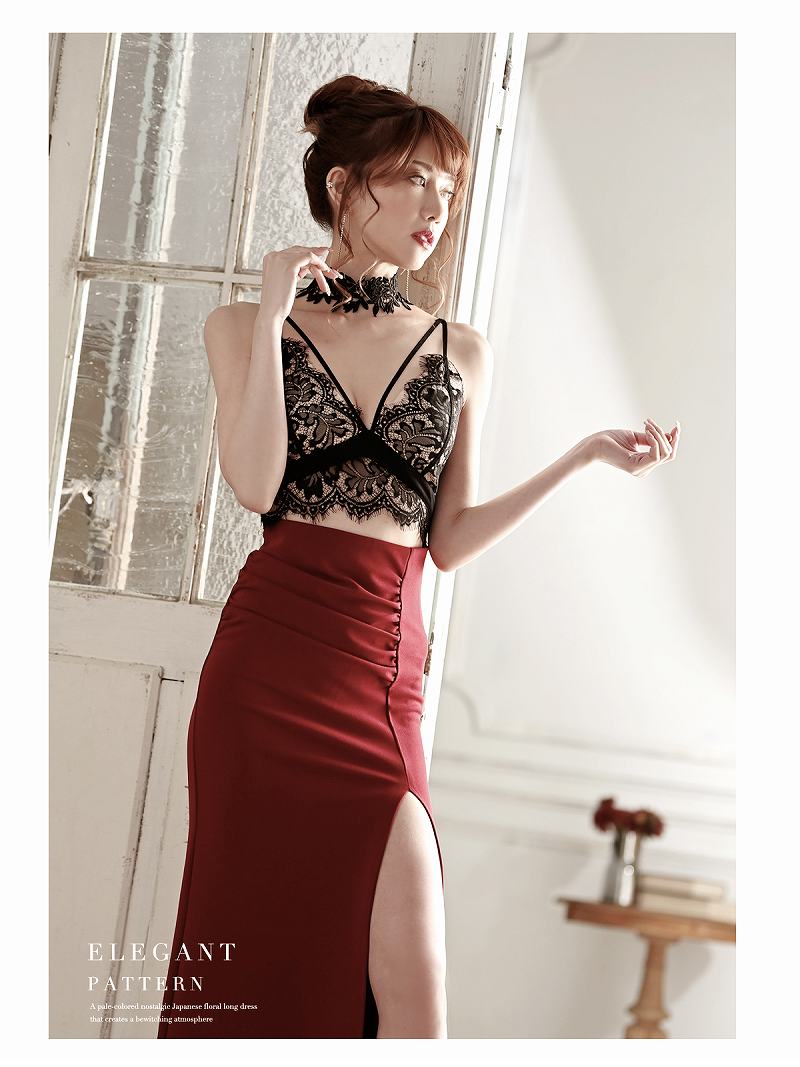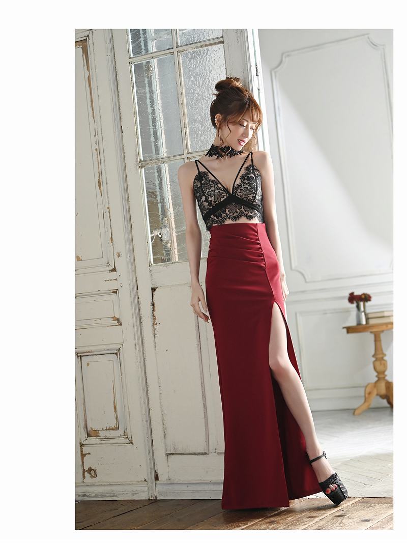 ☆がっつりスリットから覗く美脚ラインが色っぽさを放つロング丈キャバドレスはレースチョーカー付きでエレガントさをON!!上品さと色気を兼ね備えたキャバクラドレスはキャバ嬢さんやホステスさんにピッタリです!!