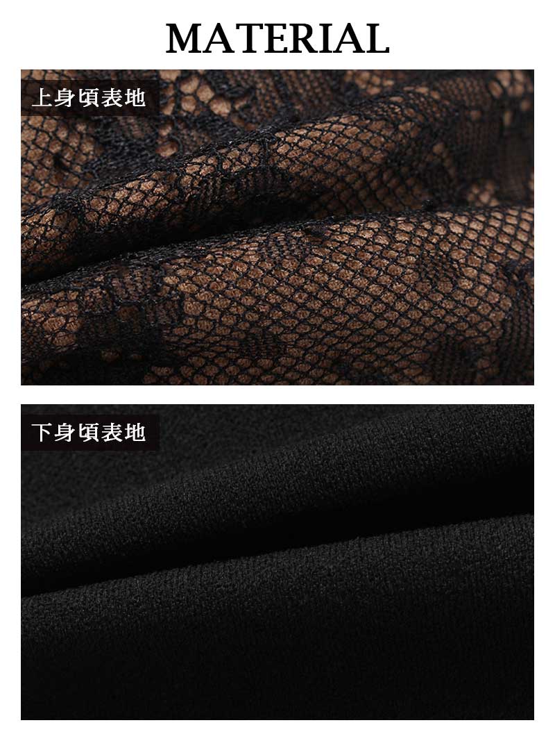 ☆シースルー生地の面積が広くsexyな袖付きドレスは上半身は深めなバストカットが谷間魅せ抜群だから男心をバッチリ掴める色気たっぷりのレースドレス。