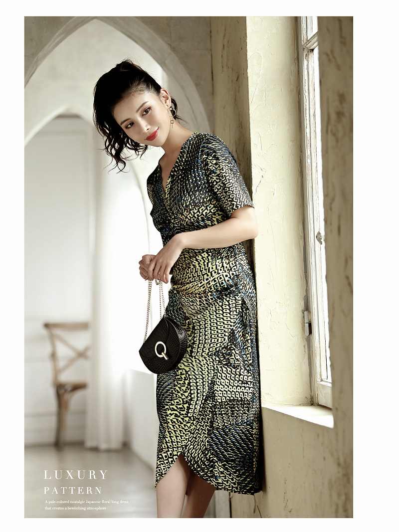 ☆インパクトあるパイソン柄が目を惹くカシュクールワンピースはキャバワンピでは珍しいパンチの効いたアニマルプリントなので人と被りたくない、目立ちたいというキャバ嬢さんにピッタリの膝丈キャバドレスです♪