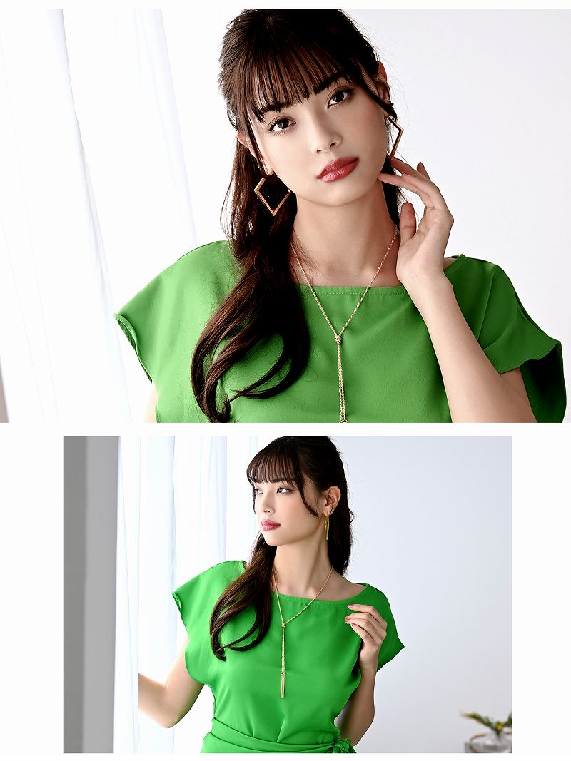 ☆ドルマンスリーブ袖で二の腕をカバーしつつ、光沢感のあるワンカラーがセレブ感溢れます。