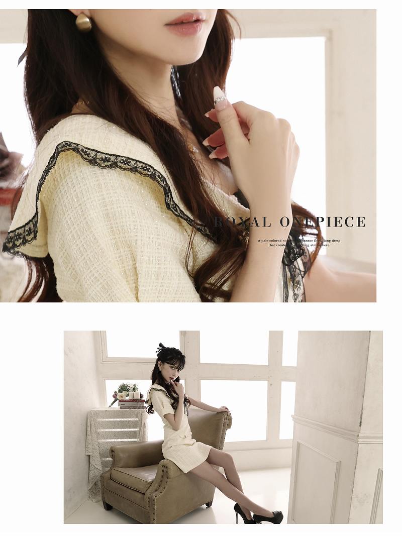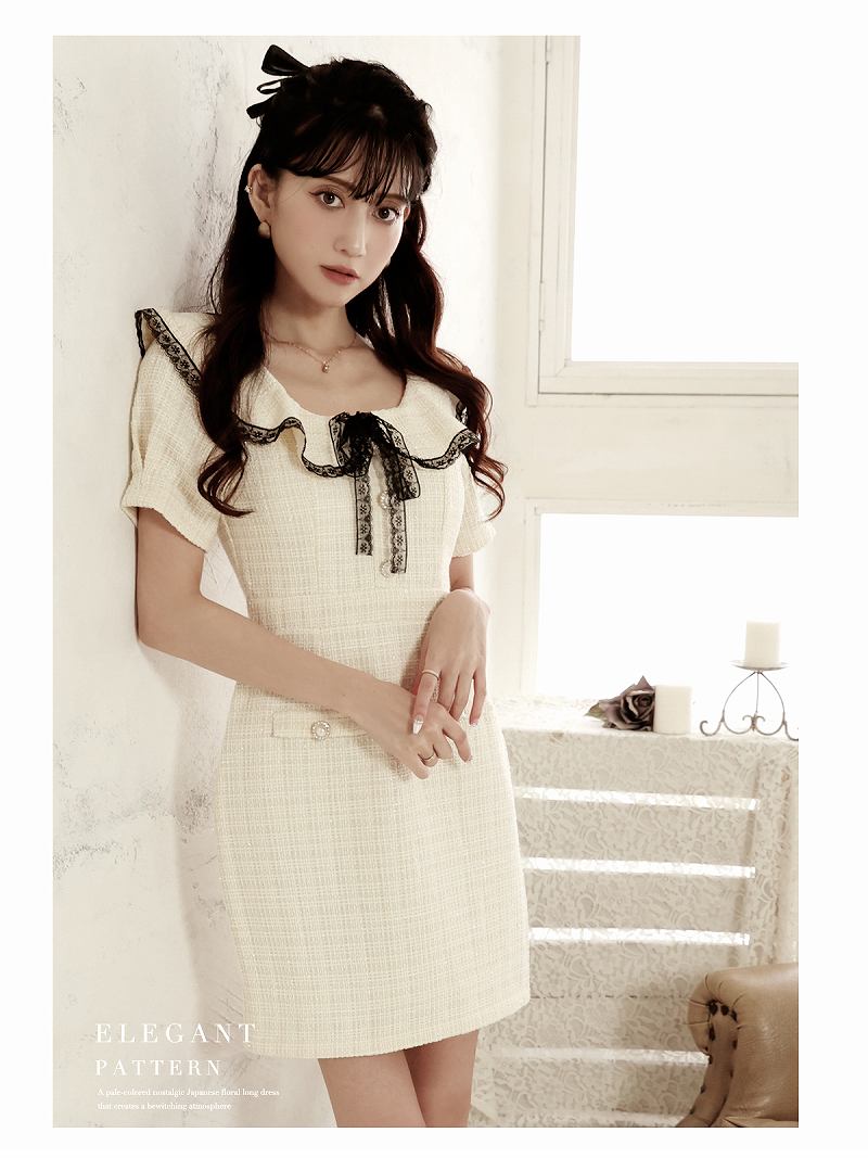 襟付き ドール ラメツイード 袖付き ツイード Belsia(S/M/L)(アイボリー/ブラック)