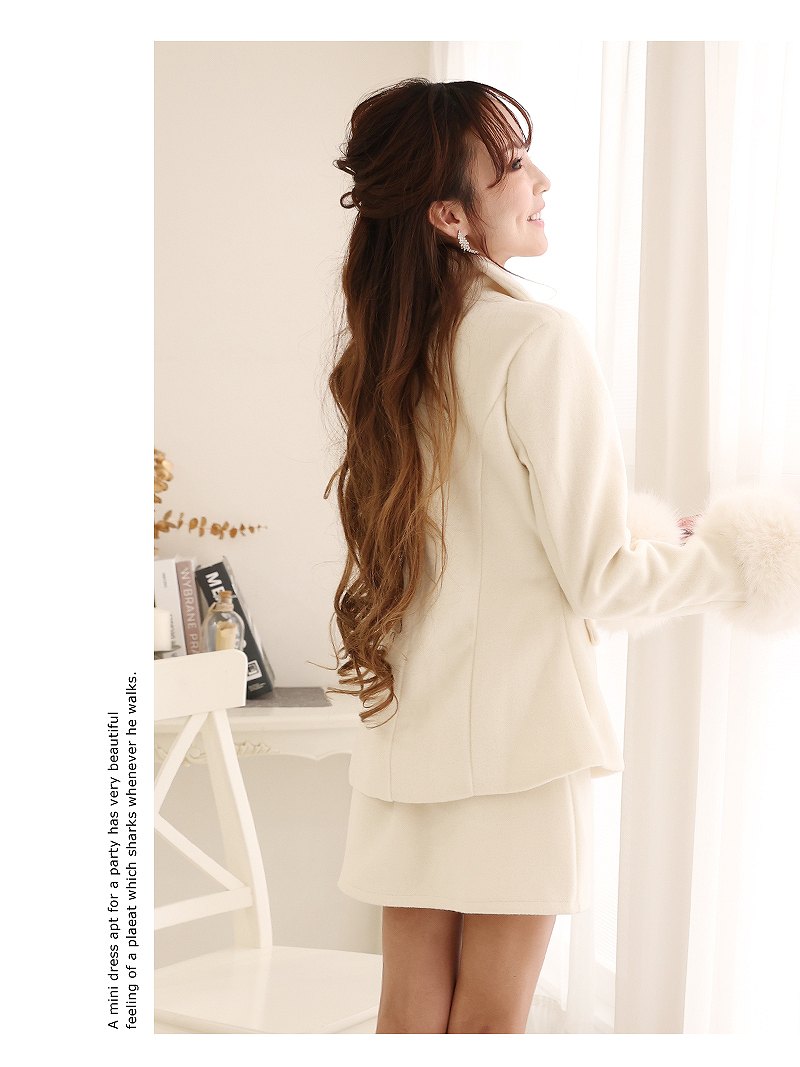 キャバスーツ ファー 襟付き フォーマル 豪華 ミニ丈 Belsia(S/M/L)(アイボリー/ブラック)