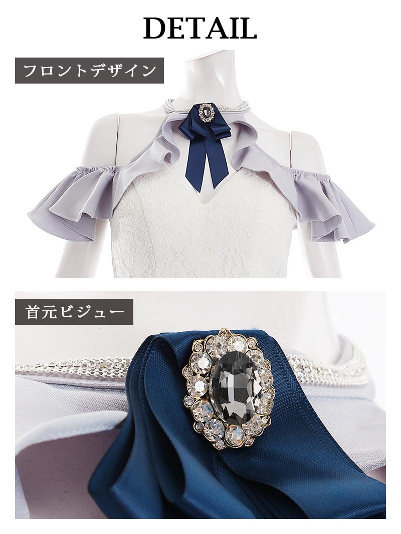 キャバドレス ミニ オフショルダー フリル ホルターネック バストカット ブローチ an(S/M)(ブルーグレー×ホワイト/ピンク×ホワイト) [507453]
