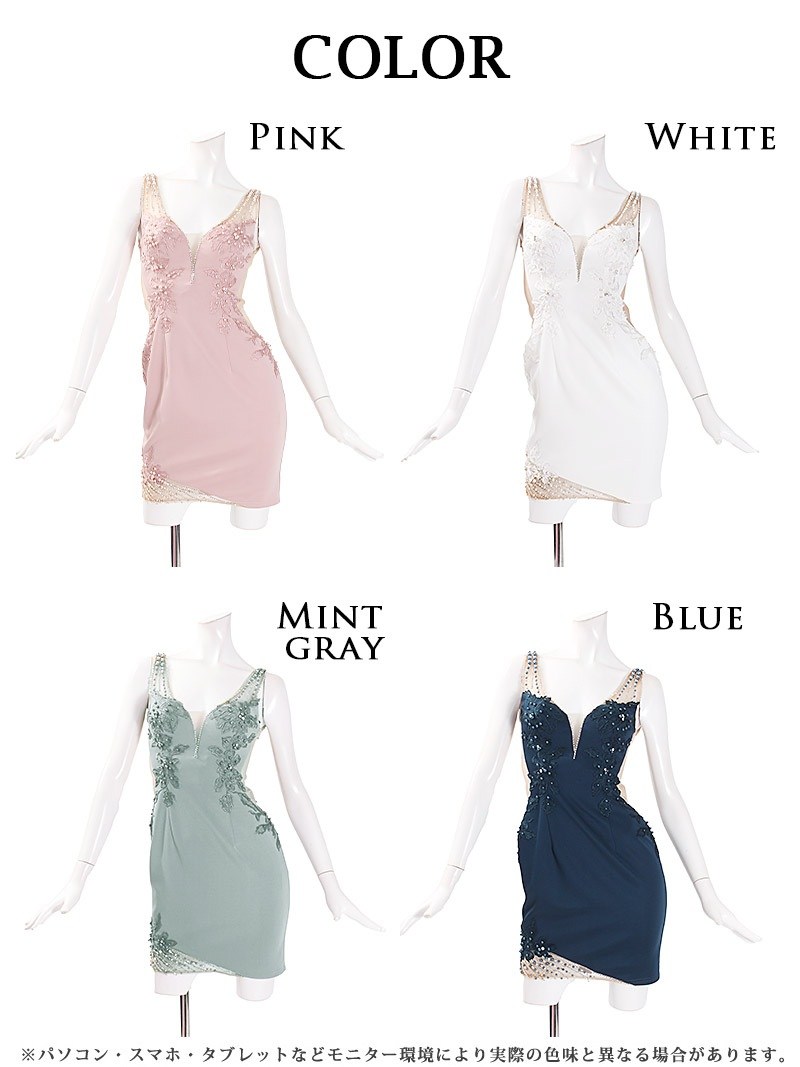 キャバドレス ミニ ビジュー キャミソール 谷間 シアー 花柄刺繍 AngelR(S/M)(ホワイト/ピンク/ミントグレー/ブルー) [507844]