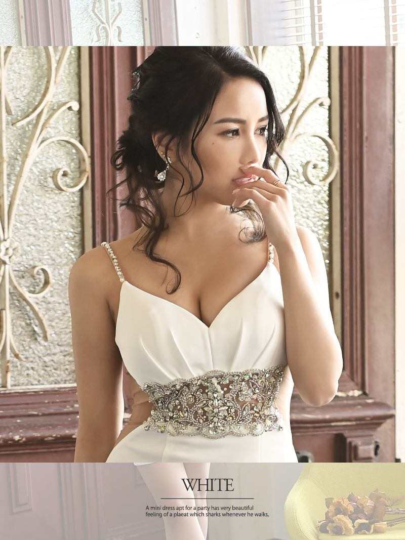 ☆煌めくビジューがウエストに贅沢に施された豪華なミニドレスはウエストから背中かけたシアーからの大胆な肌魅せとタイトなラインでボディのSラインを強調した色気漂う大人の高級ドレス♪