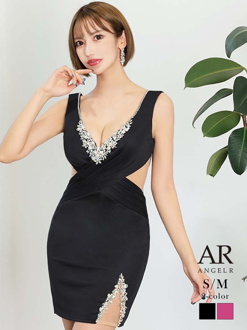 キャバドレス ミニ キャバ嬢 ブランドドレス ミニ 細見え ワンカラー AngelR(S/M)(ブラック/ローズピンク) [508447]
