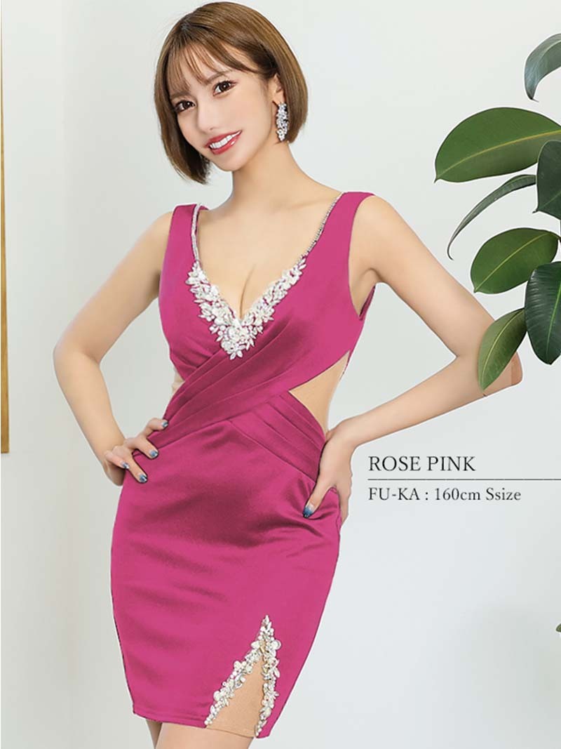 キャバドレス ミニ キャバ嬢 ブランドドレス ミニ 細見え ワンカラー AngelR(S/M)(ブラック/ローズピンク)