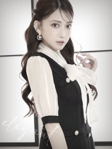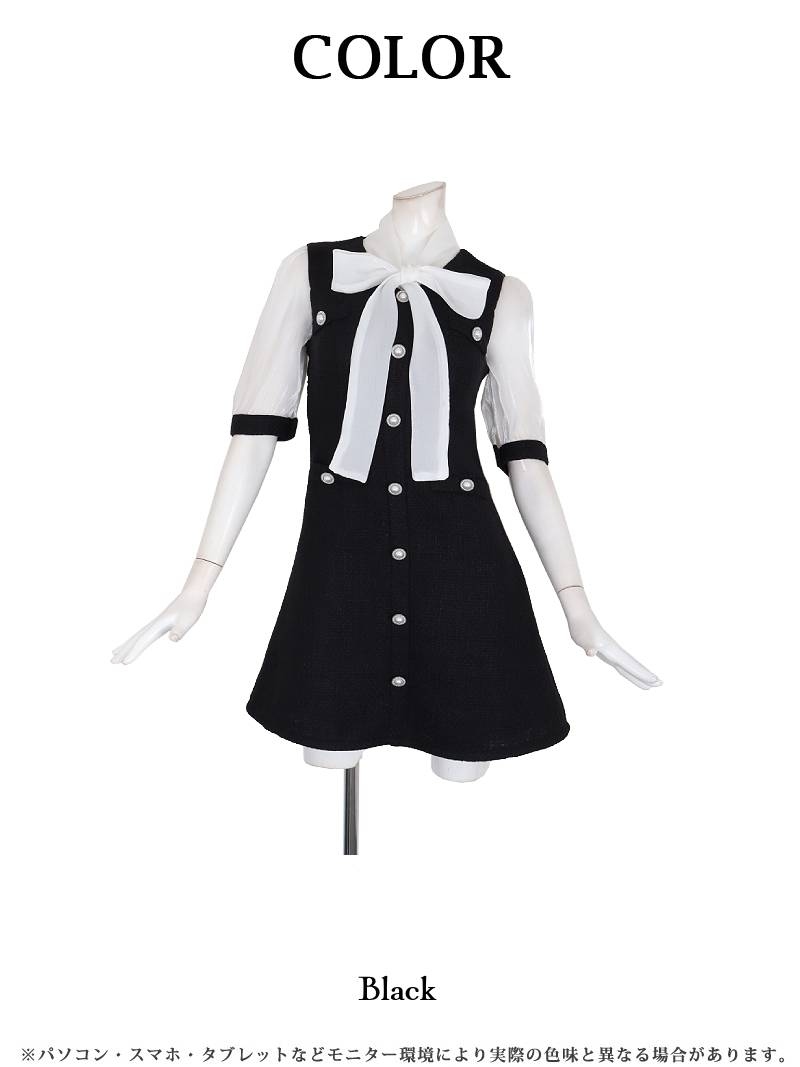 ワンピース キャバドレス ボータイ ツイード レイヤード風 韓国風 光沢があるシフォン Belsia(S/M/L)(ブラック)