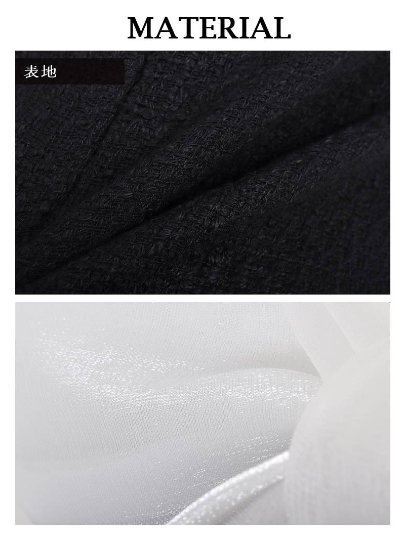 ☆ツイード素材と光沢のあるシフォンのレイヤード風デザインが、大人の華やかさを演出。