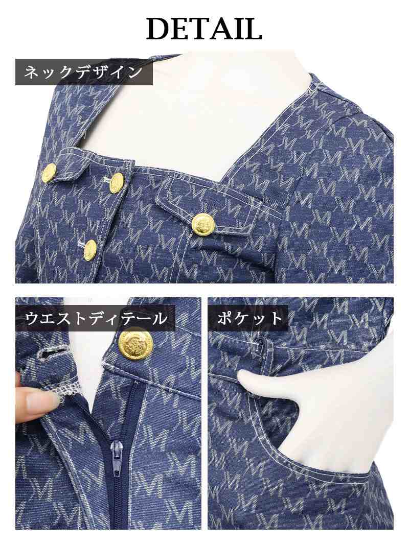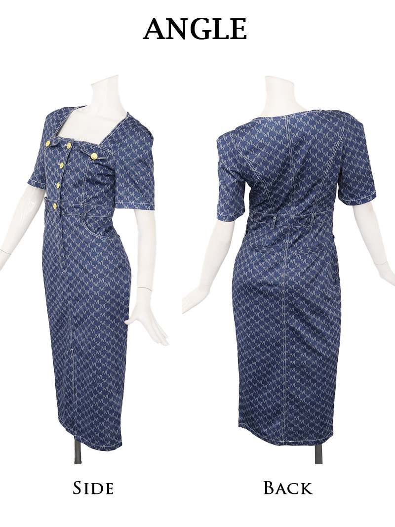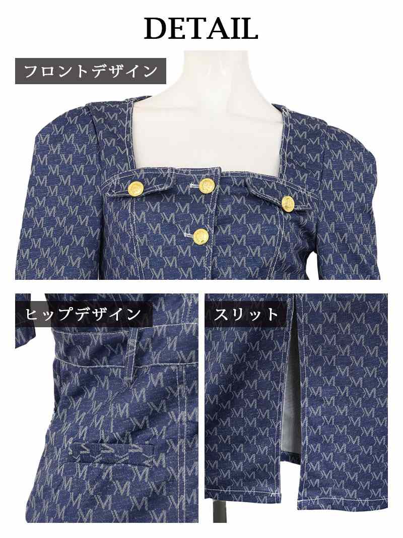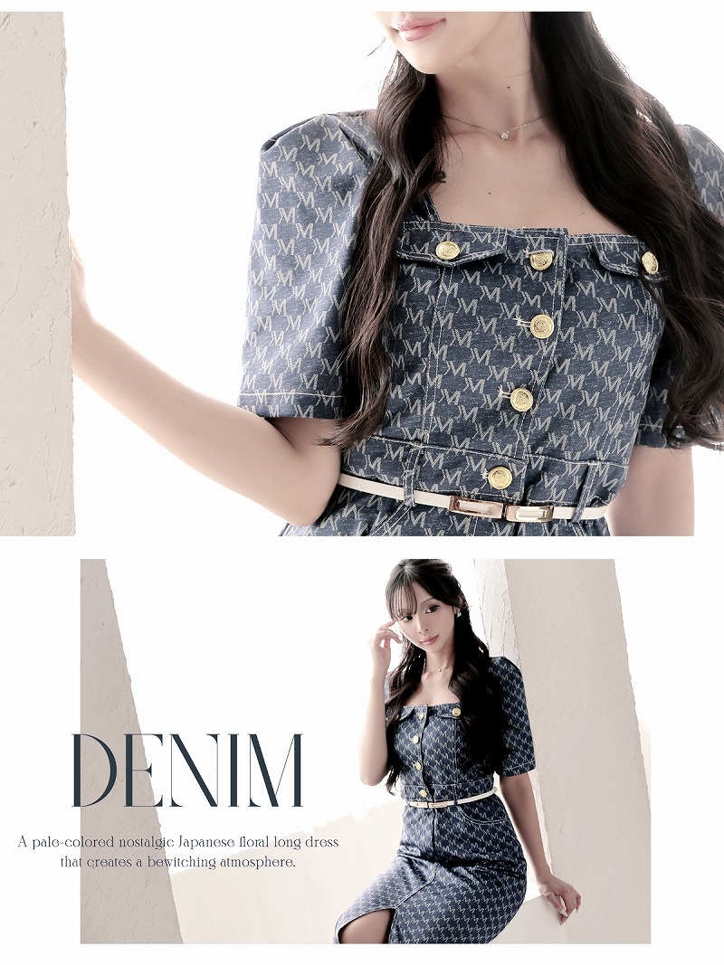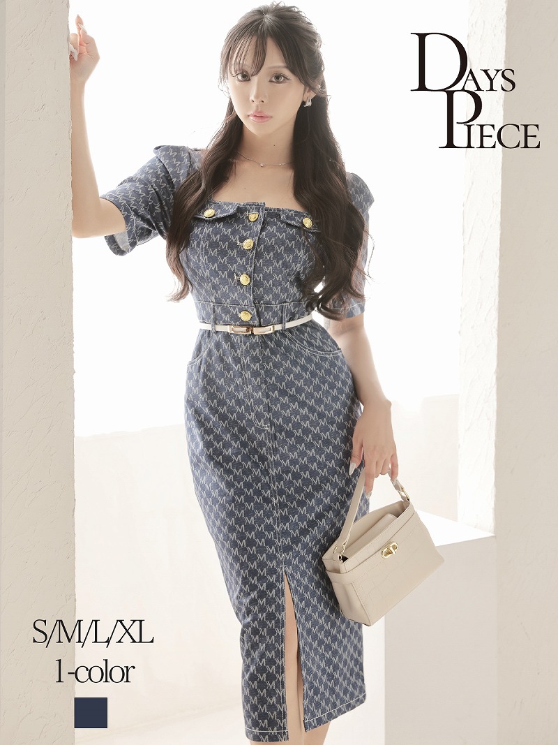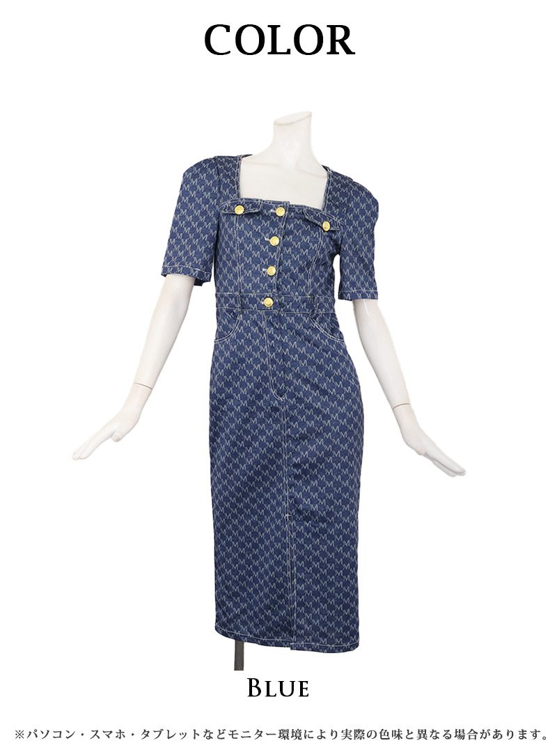 ワンピース キャバドレス デニム 膝丈 韓国ワンピース 袖付き 半袖 DaysPiece(S/M/L/XL(2L))(ブルー) [510074]