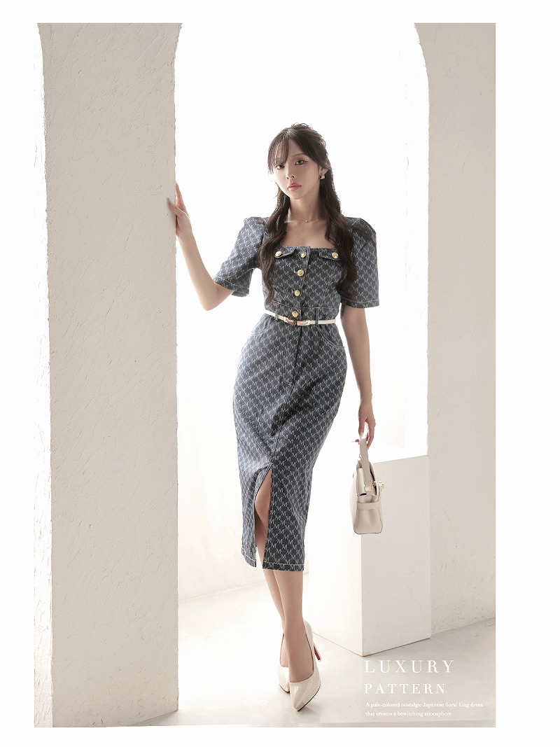 ☆中央スリット入りのミディ丈で、美脚見せと歩きやすさを両立できる韓国ドレス。