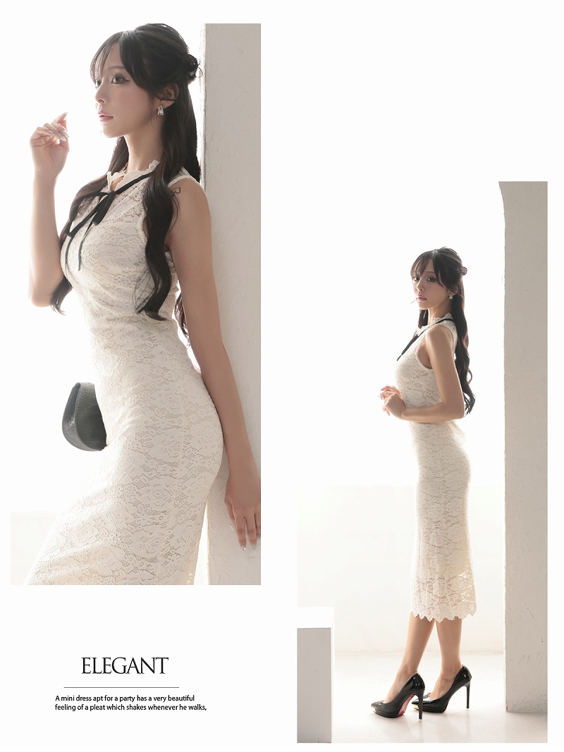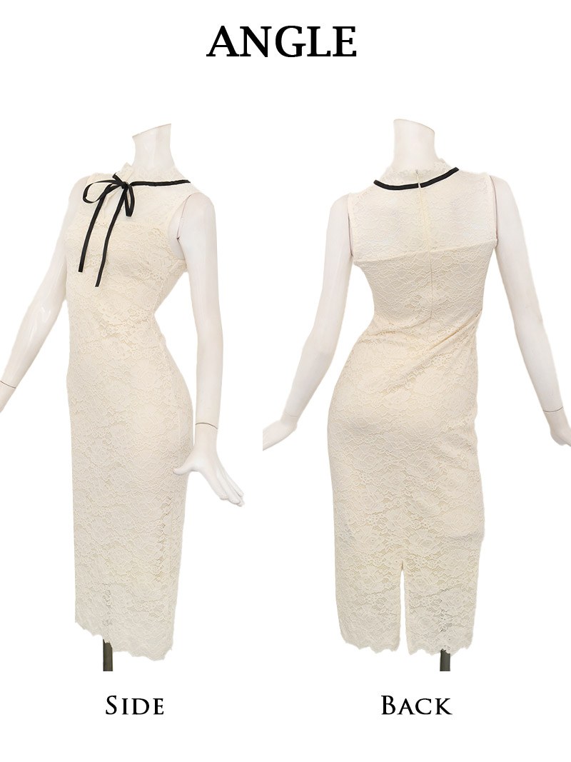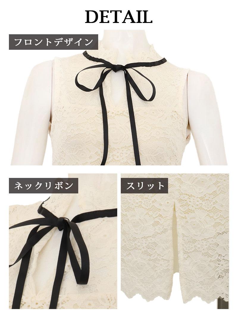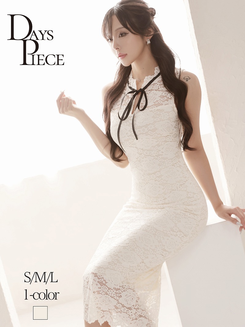 ワンピース キャバドレス レース リボン ノースリーブ ミディ丈 膝丈 DaysPiece(S/M/L)(ベージュ) [510088]