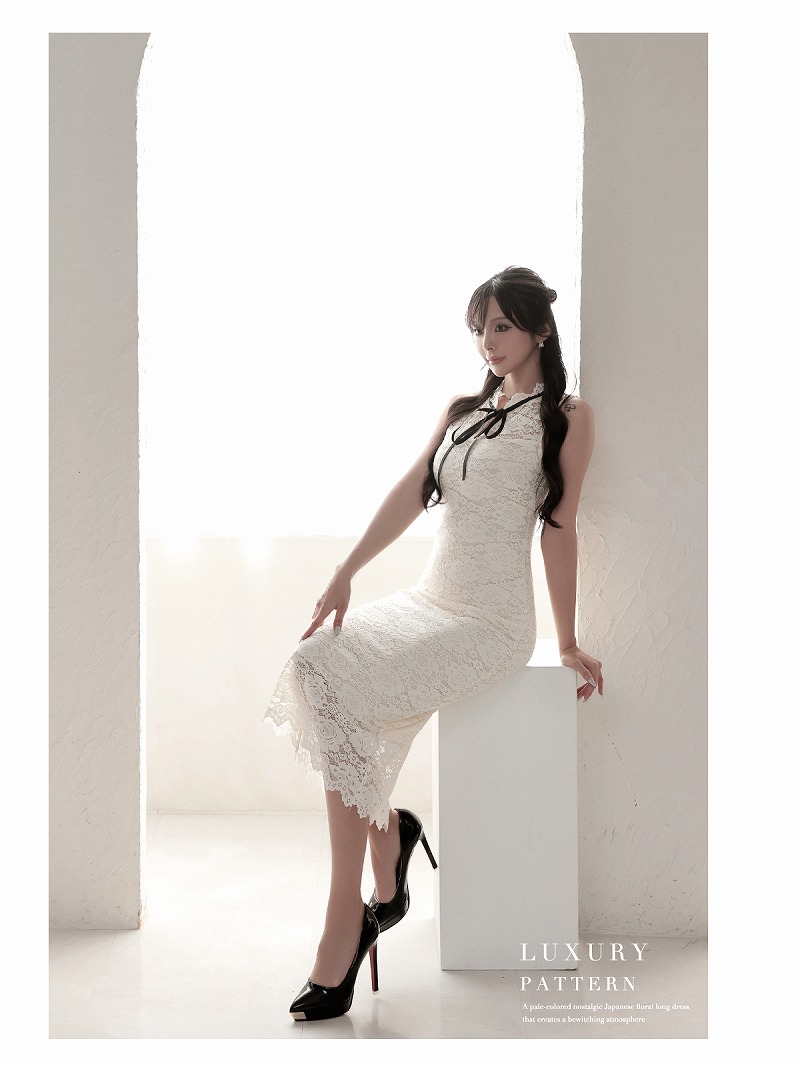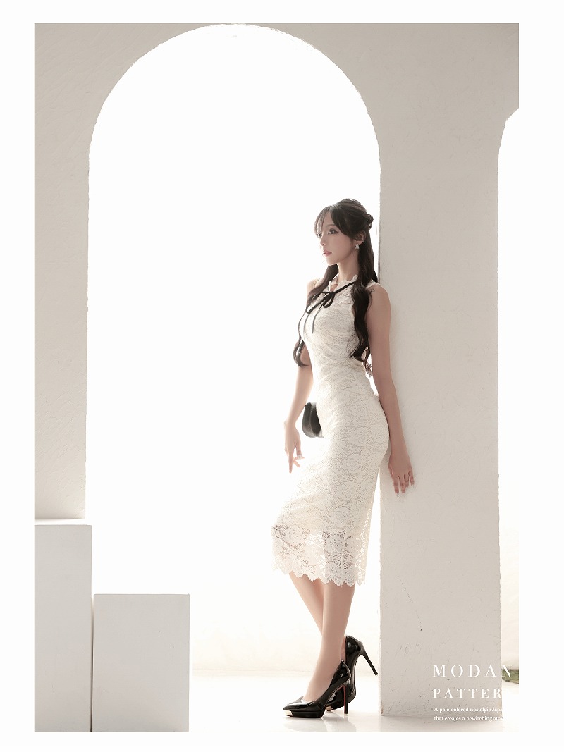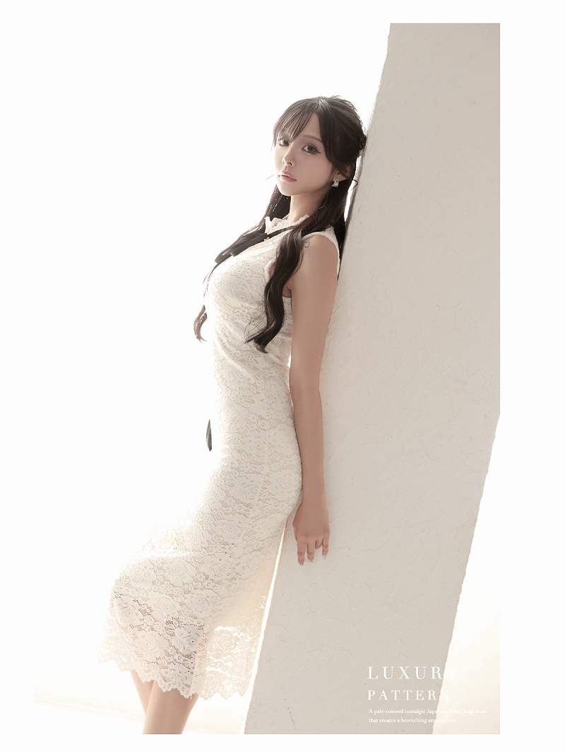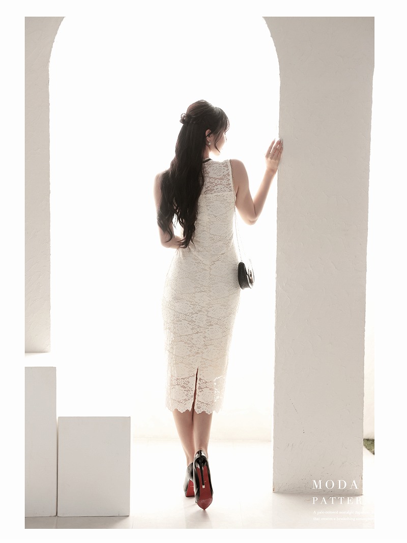 ☆総レース素材で上品さとセレブ感を演出する白の韓国ワンピース。