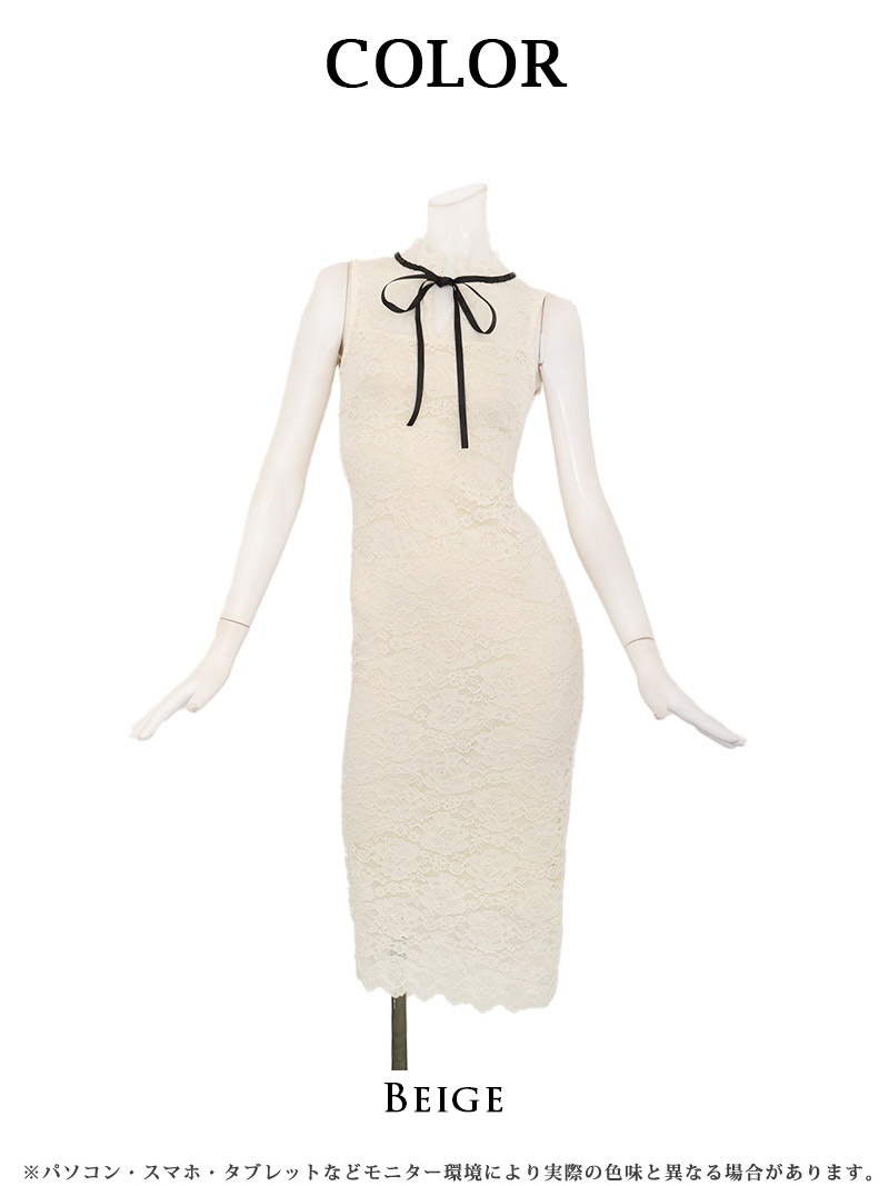 ワンピース キャバドレス レース リボン ノースリーブ ミディ丈 膝丈 DaysPiece(S/M/L)(ベージュ)