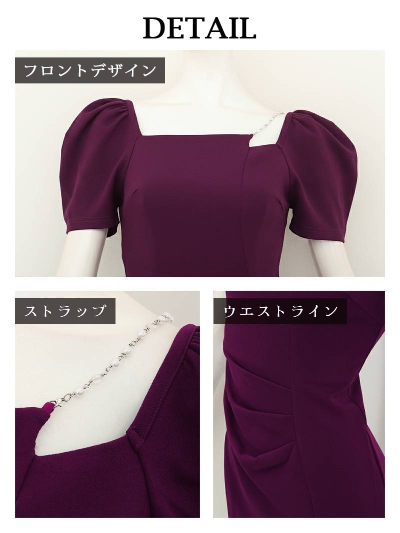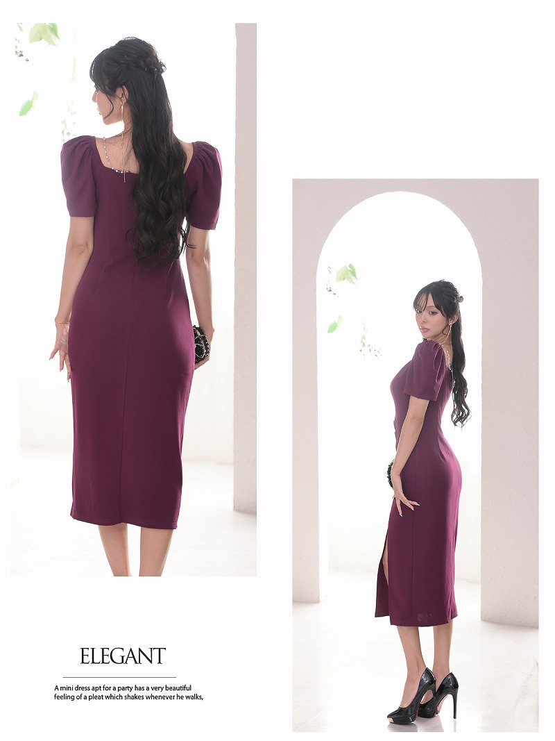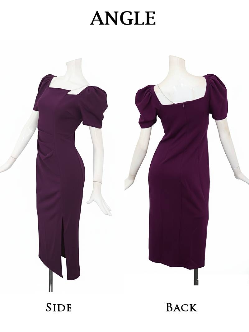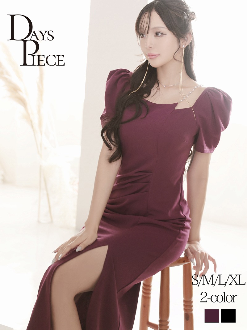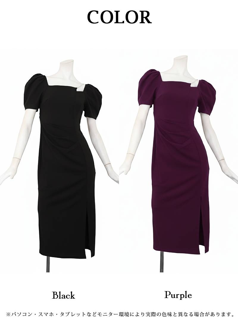※一部予約販売※ワンピース キャバドレス 半袖 袖付き パフ袖 膝丈 ミディ丈 DaysPiece(S/M/L/XL(2L))(ブラック/パープル)