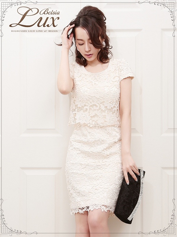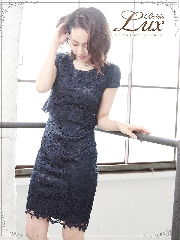 キャバドレス ミニ キャバドレス キャバ ドレス 総レースワンピース レースワンピース 膝丈 キャバクラ ワンピース フォーマルワンピース 膝丈ワンピース Belsia.LUX(S/M/L)(ベージュ/ネイビー) [500860]