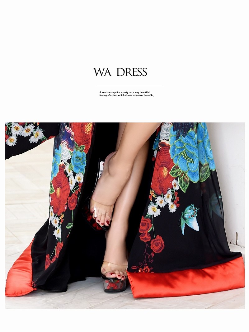 キャバドレス 和柄 着物ドレス 花魁 和柄 黒 ダンス衣装 流遊(M/L)(ブラック)