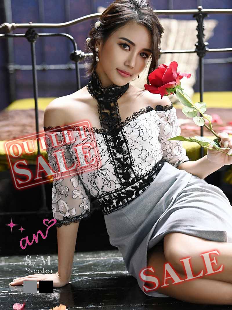 ☆【an】からの訳ありアウトレット、特別価格で手に入るオフショルレースミニドレス!1点もののため、売り切れ次第終了となります。