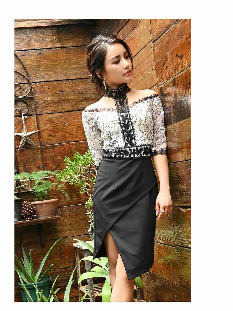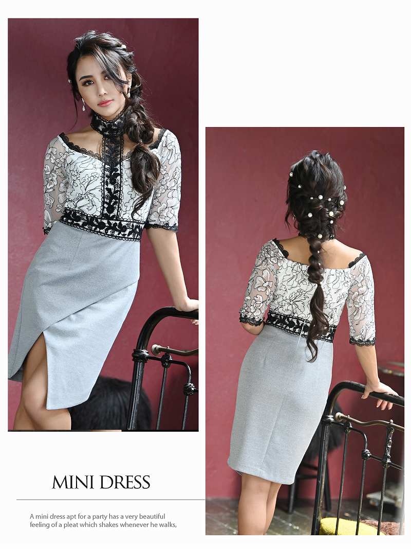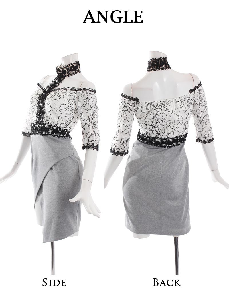 キャバドレス ミニ ANDY an 高級 ブランドドレス キャバドレス an(S/M)(ホワイト×ブラック/ホワイト×ライトグレー) [509471]