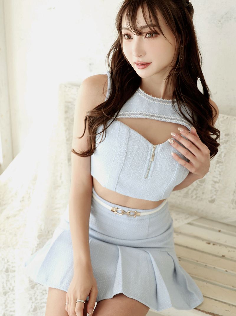 セットアップ キャバ ドレス キャバドレス レディース ベルト付き 可愛い 韓国風 Belsia(S/M/L)(ブルー/ピンク)
