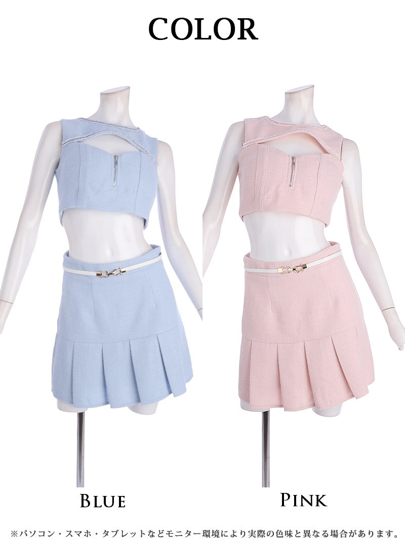 セットアップ キャバ ドレス キャバドレス レディース ベルト付き 可愛い 韓国風 Belsia(S/M/L)(ブルー/ピンク) [509541]