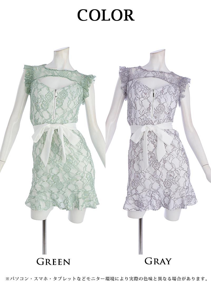 キャバドレス ミニ キャバドレス ミニ キャバ嬢 シアー フリル Belsia(XS/S/M/L)(グリーン/グレー)
