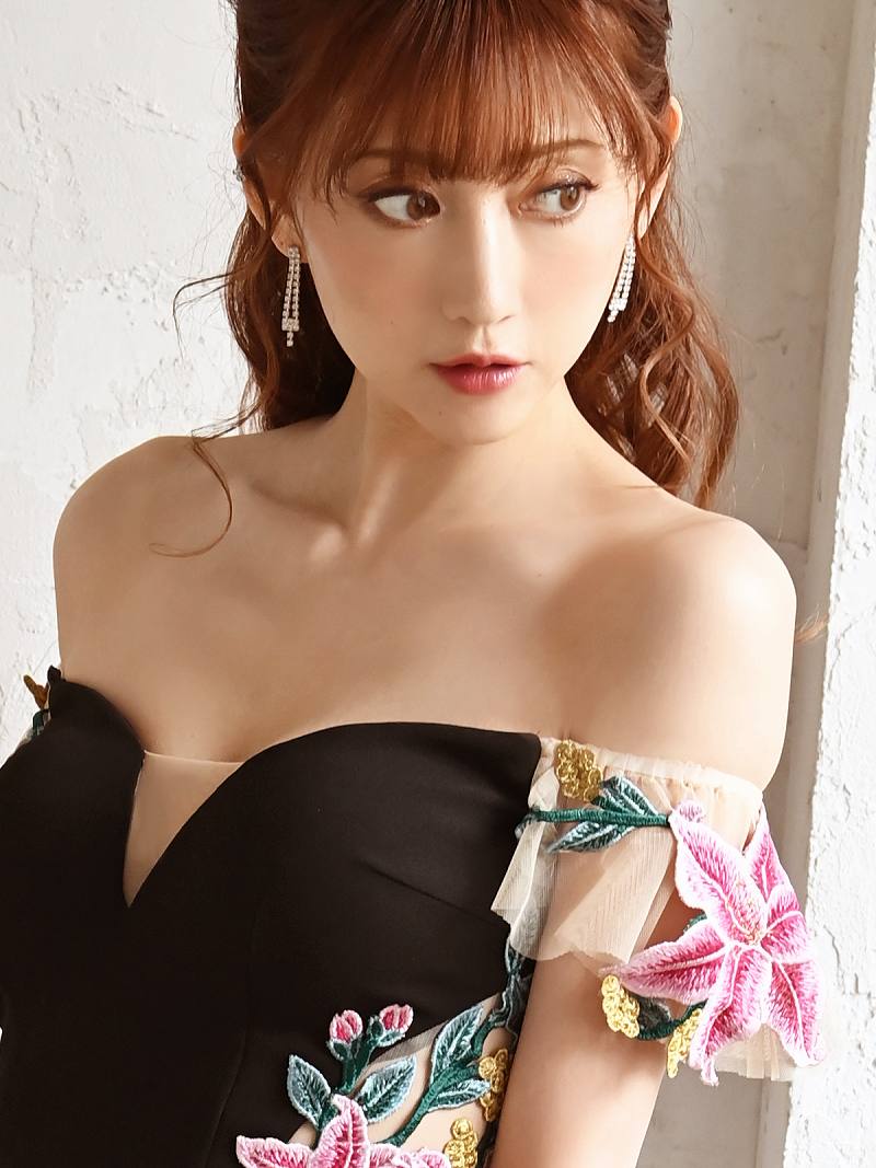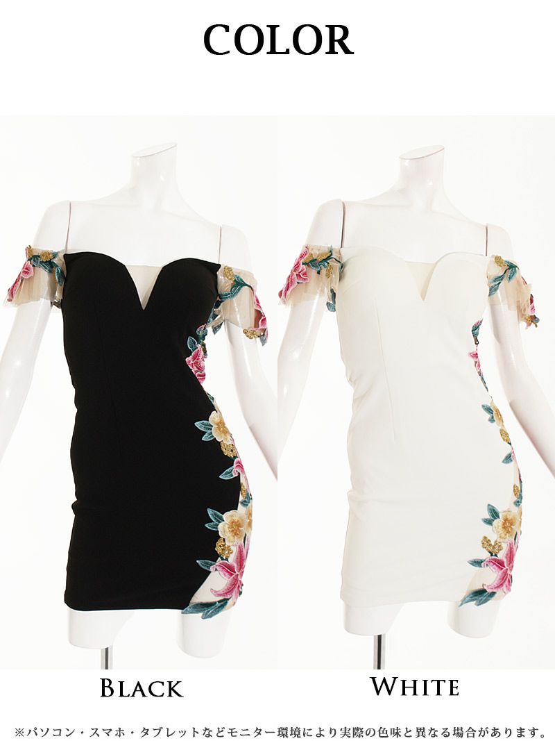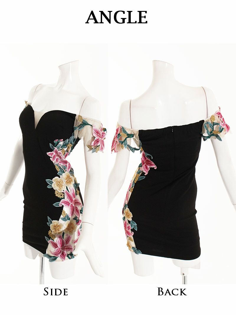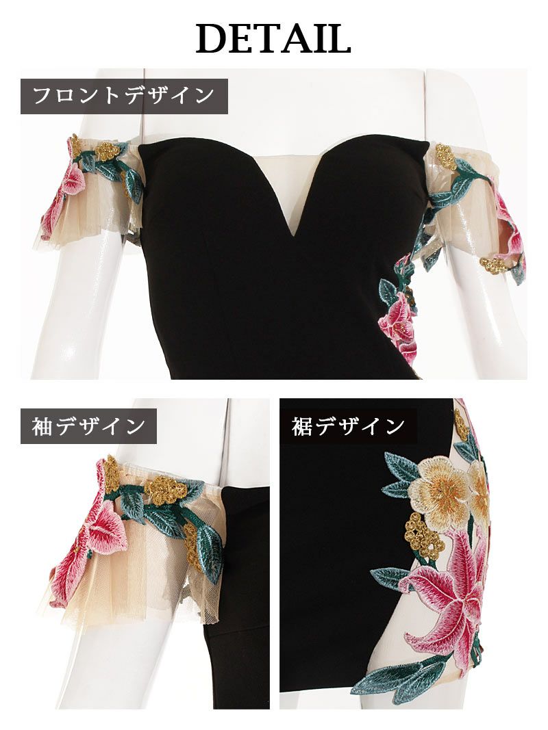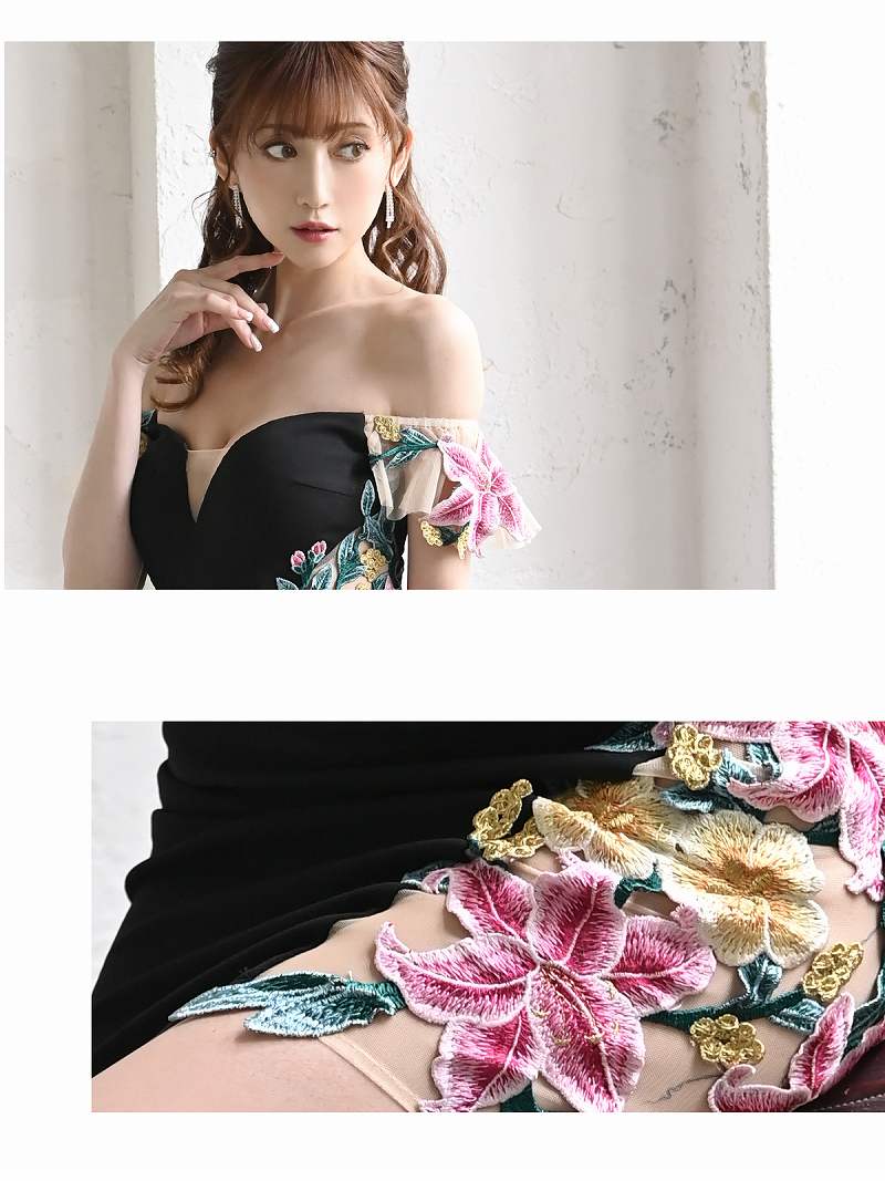 ☆オフショルダーと花柄デザインが女性らしさを引き立て、ナイトドレスやお水の場にぴったり。