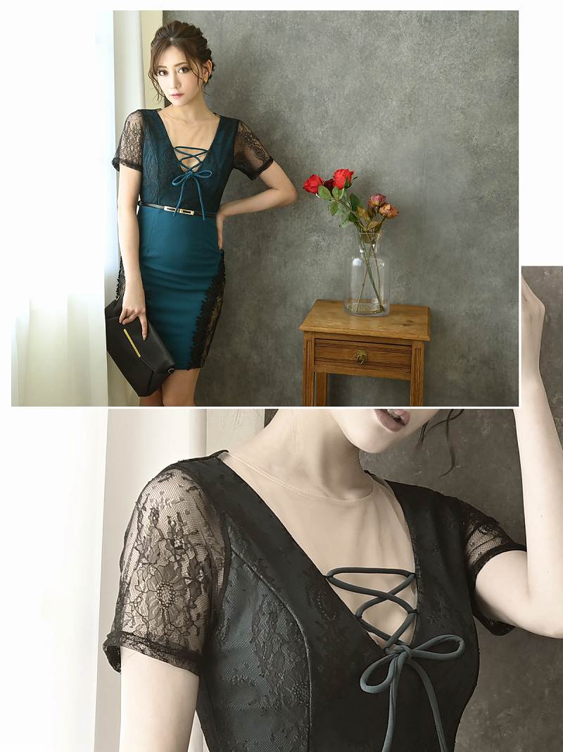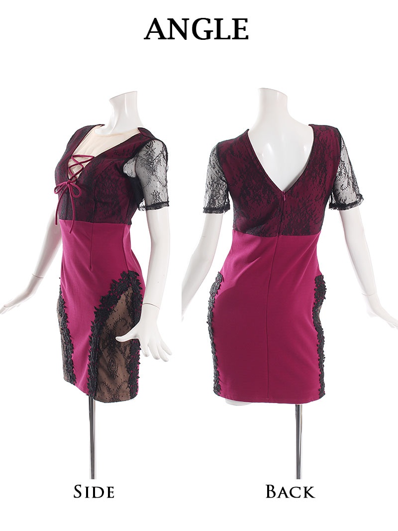 ☆【Belsia】から訳ありアウトレット!セクシーで妖艶なレース&刺 美ラインキャバミニドレス。1点もののお得なアイテムです。