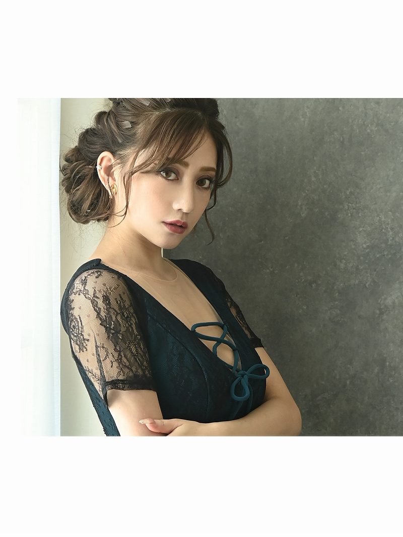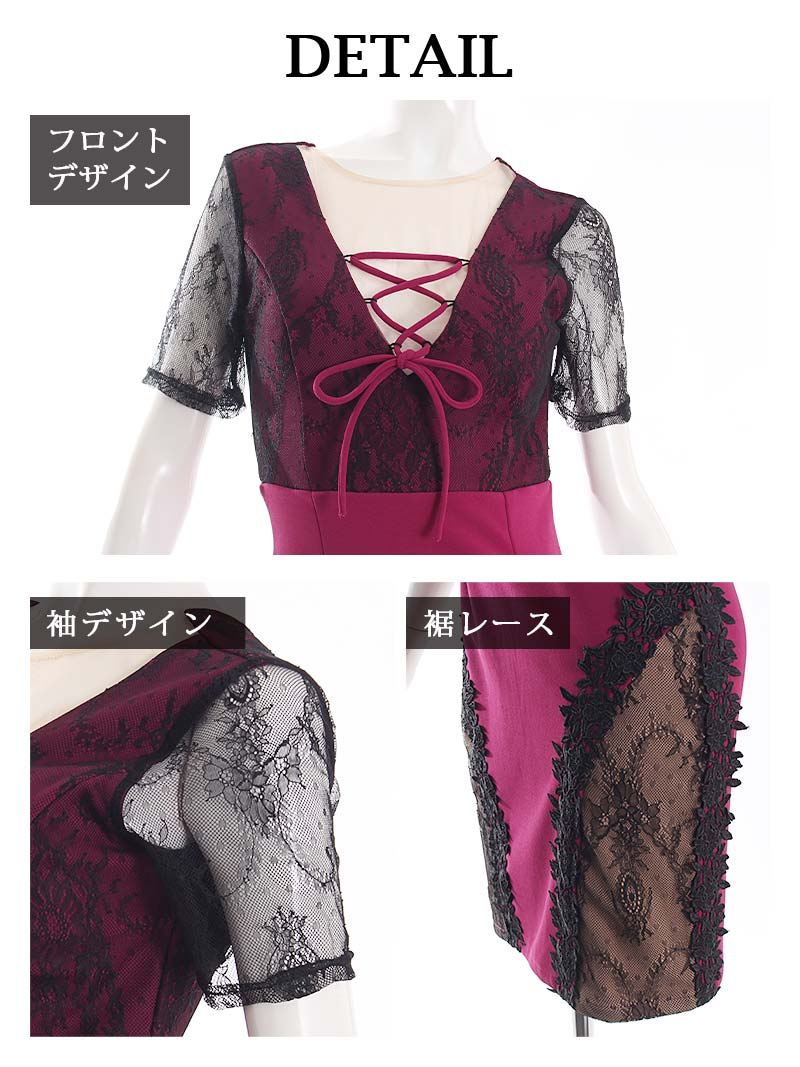 ☆袖付きのレースがエレガントで、谷間をセクシーに強調。