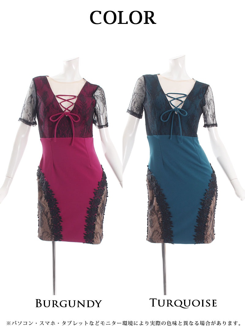キャバドレス ミニ キャバドレス セクシー ミニドレス 袖付き 肌魅せ Belsia(S/M/L)(バーガンディ/ターコイズ)