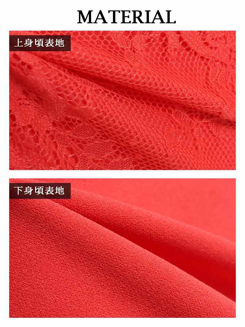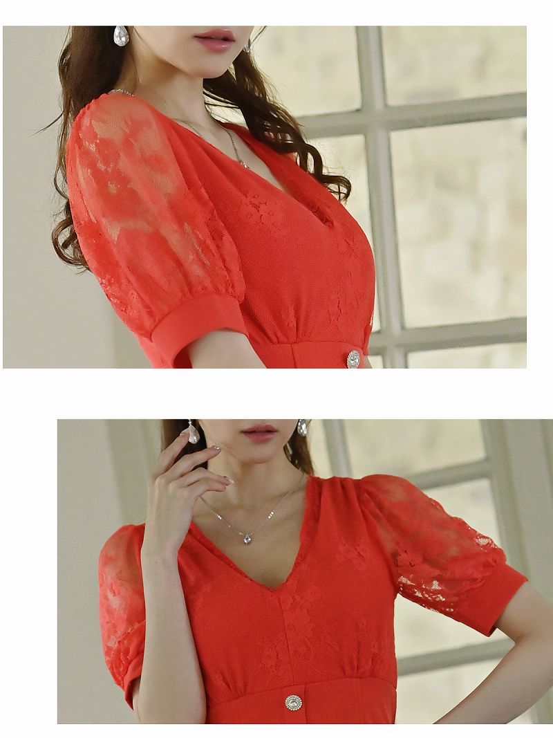 ☆タイトなシルエットがスタイルを引き立て、レース袖が華やかさをプラス。上品でセクシーな一着。