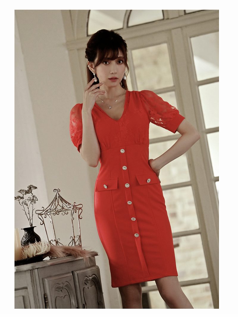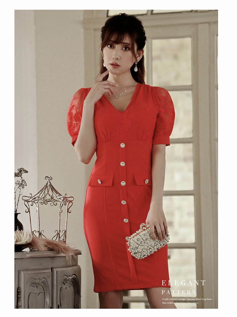 ☆【Belsia】訳ありアウトレット!レース袖がエレガントなシンプルな大人タイトキャバミニドレスが登場。数量限定、超お得!