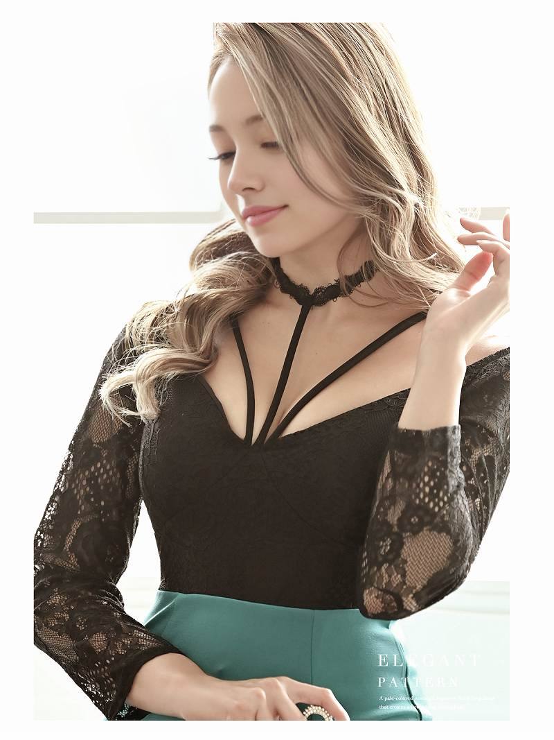 キャバドレス ミニ ランジェリー風 谷間 エロい 袖付 キャバドレス Belsia(XS/S/M/L)(ベージュ/グリーン)