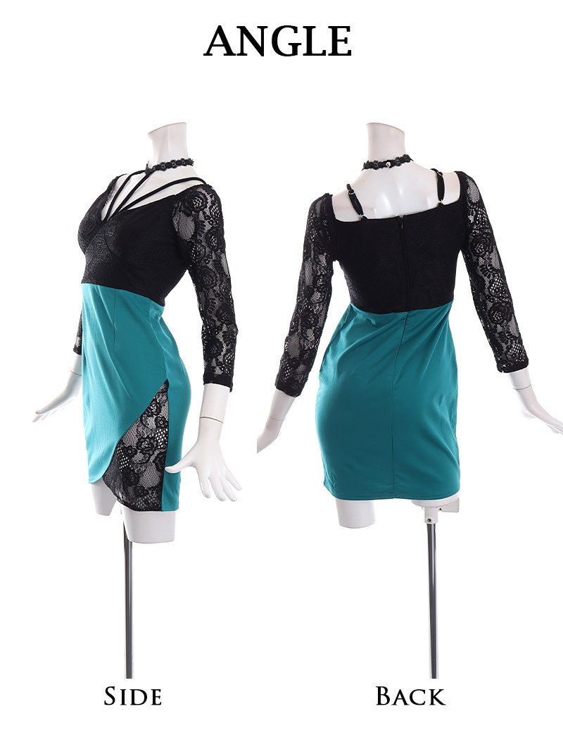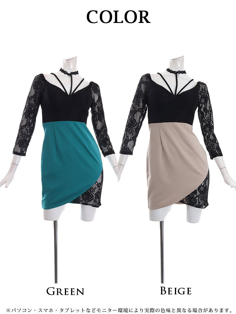キャバドレス ミニ ランジェリー風 谷間 エロい 袖付 キャバドレス Belsia(XS/S/M/L)(ベージュ/グリーン) [509635]
