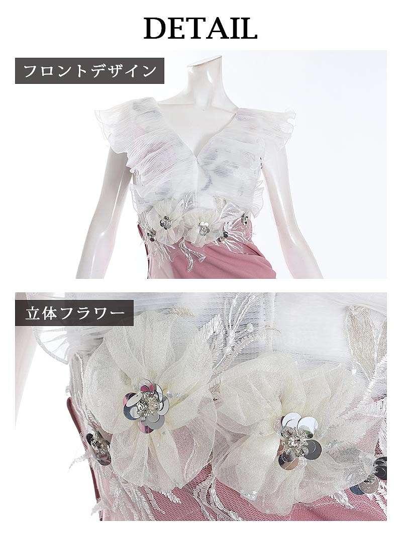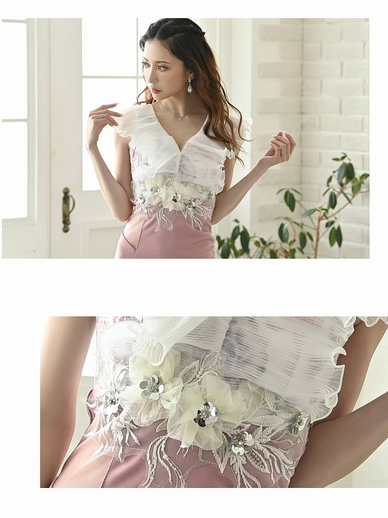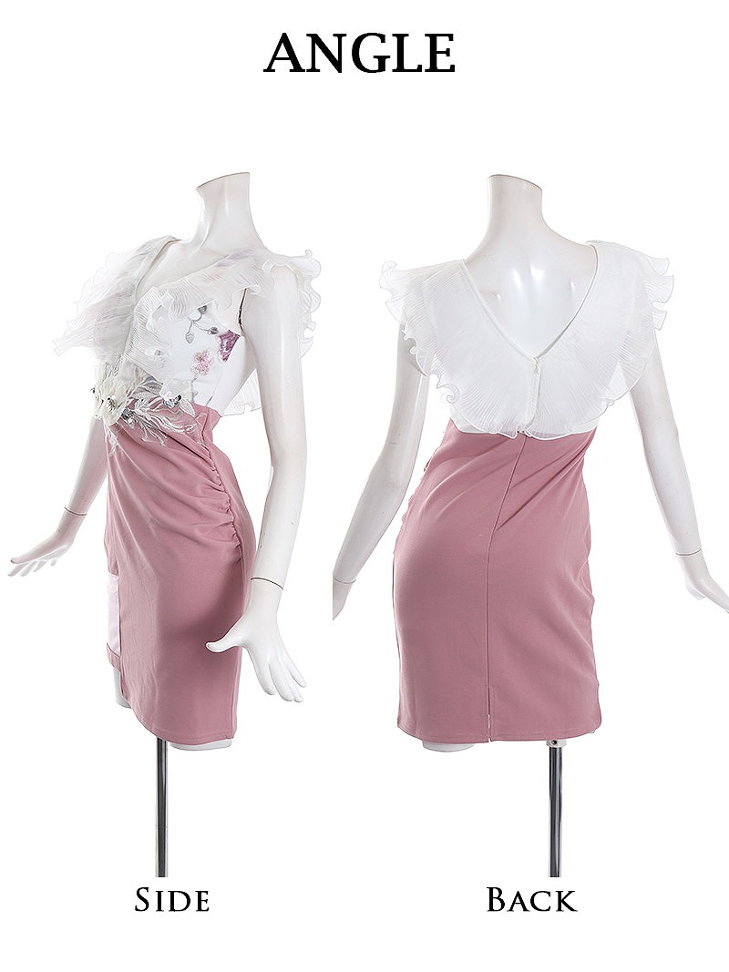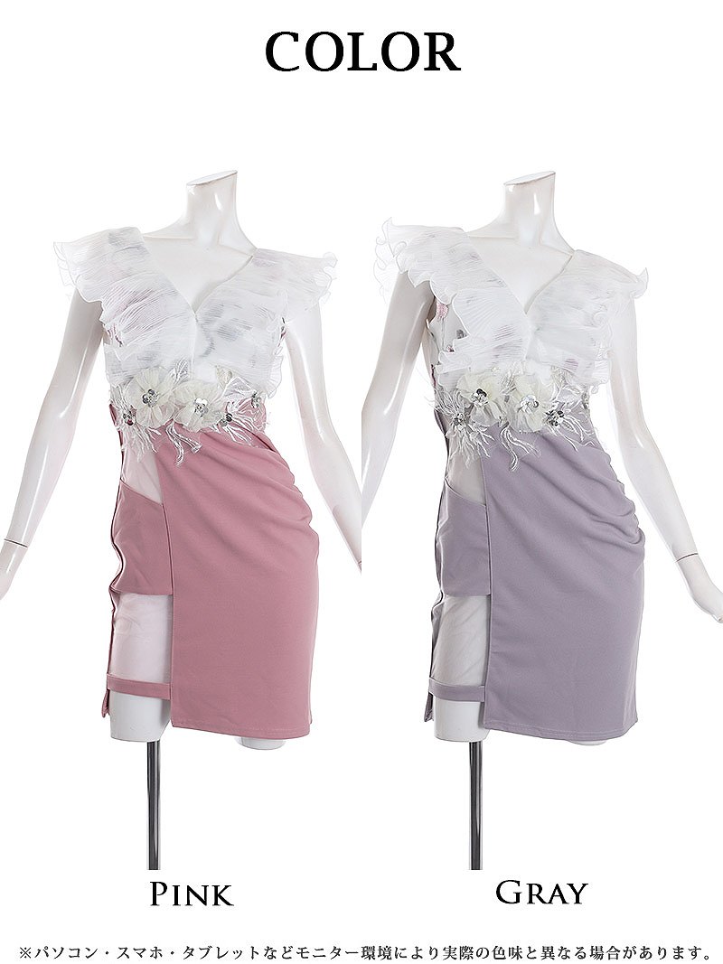 キャバドレス ミニ シアー 豪華 タイト フリル キャバドレス Belsia(S/M/L)(ピンク/グレー) [509644]