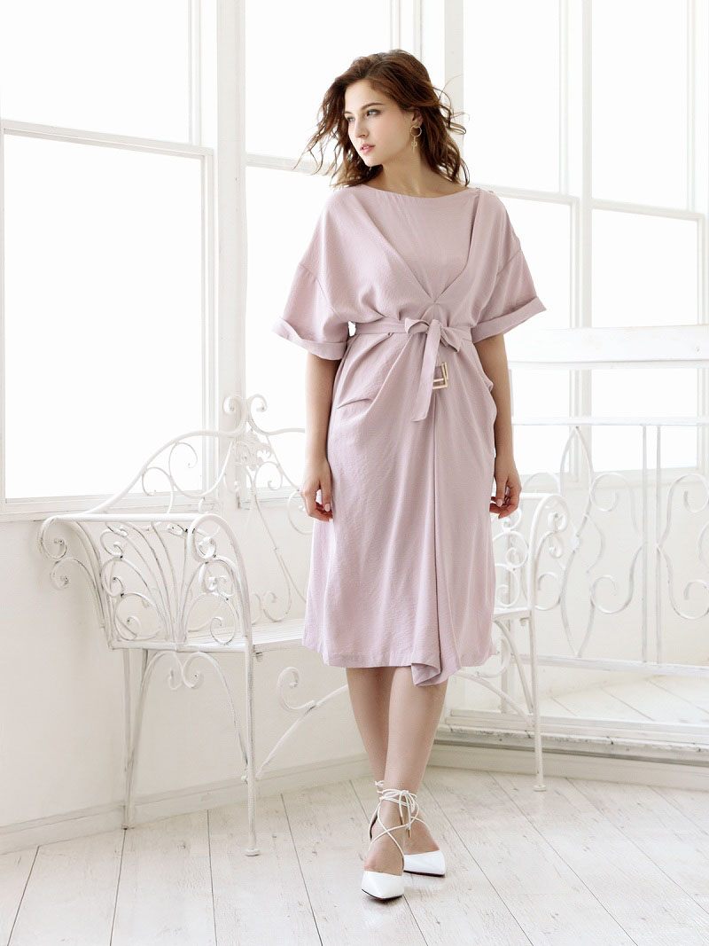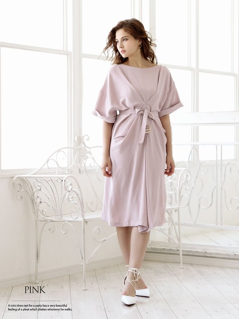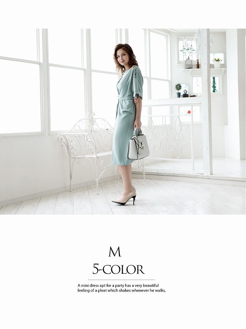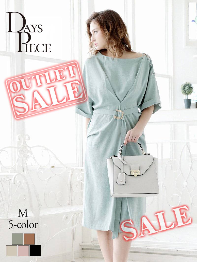ワンピース キャバドレス ワンピース タック コクーン ミモレ丈 ミディアム丈 DaysPiece(M)(ベージュ/グリーン/ピンク/ブラック/アイボリー) [509695]