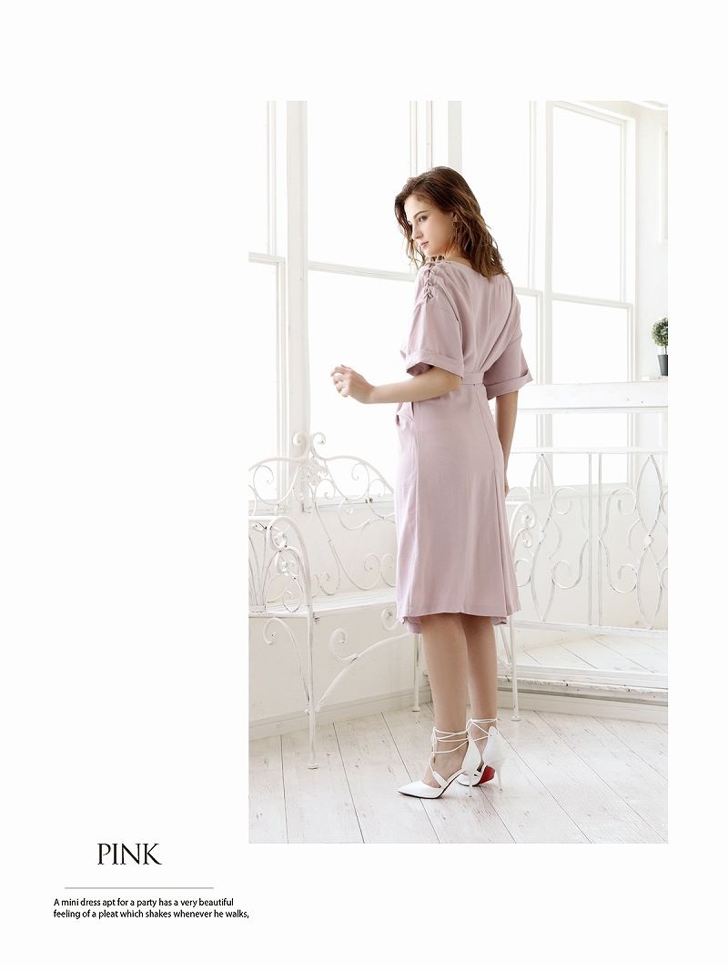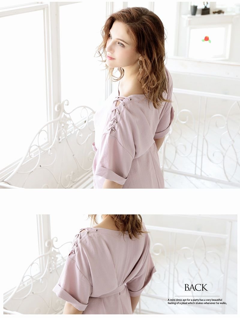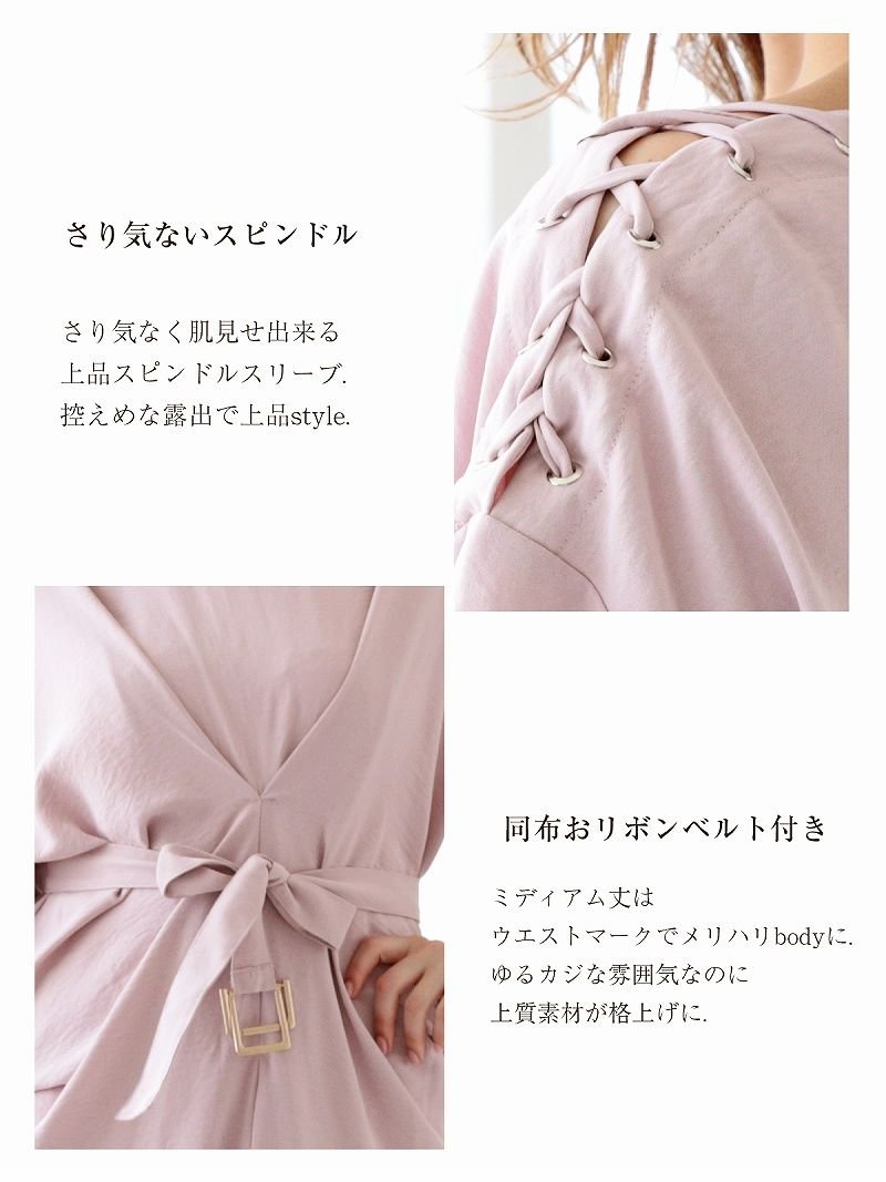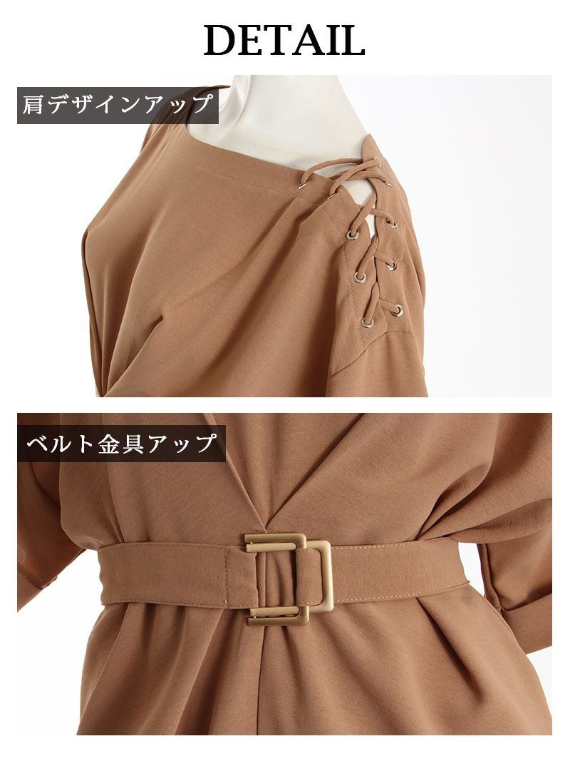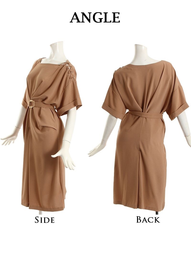 ☆ウエストマークとベルト、レースアップデザインでスタイルアップ効果抜群。