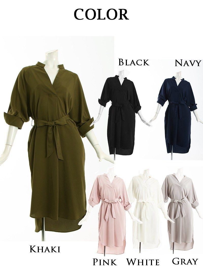 ワンピース キャバドレス 大人 膝丈 ミディアム丈 袖付 五分袖 DaysPiece(M)(ブラック/ホワイト/カーキ/グレー/ピンク/ネイビー)