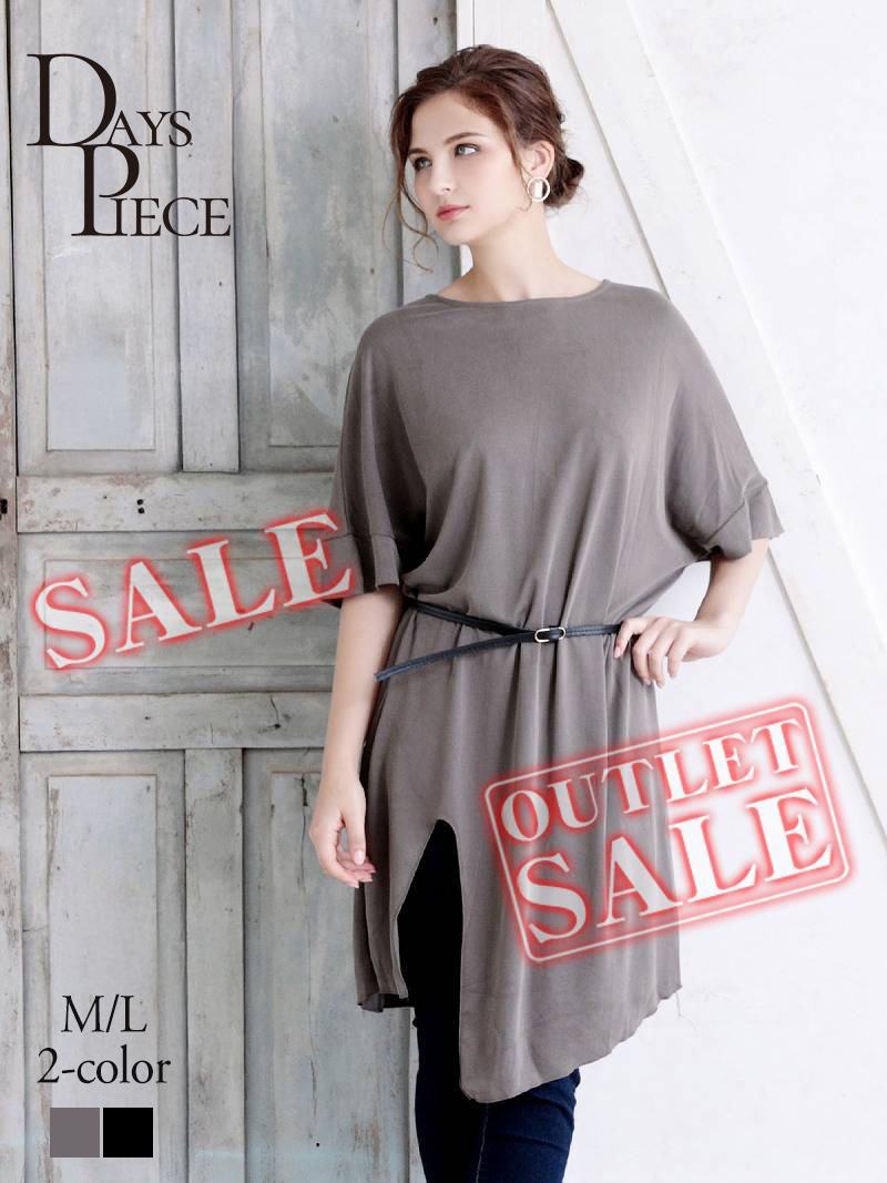 ワンピース キャバドレス パーティードレス ドルマン ワンピース ベルト付き 無地 DaysPiece(M)(ブラック/カーキ) [509786]