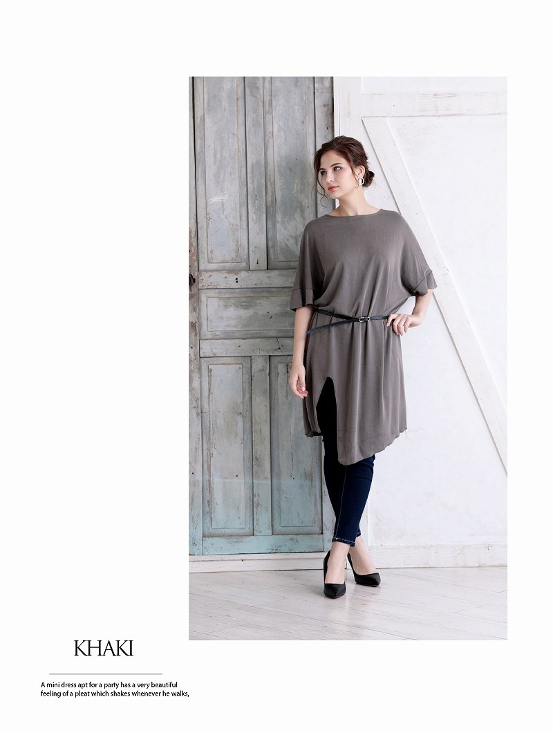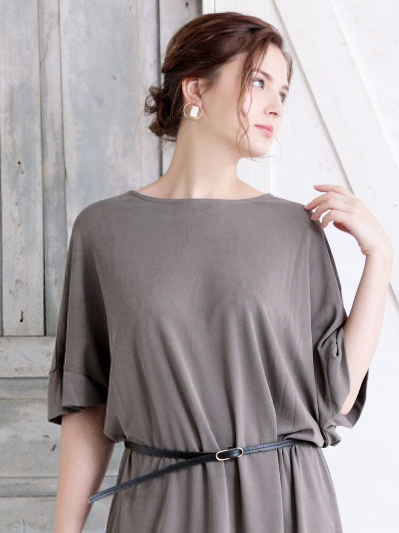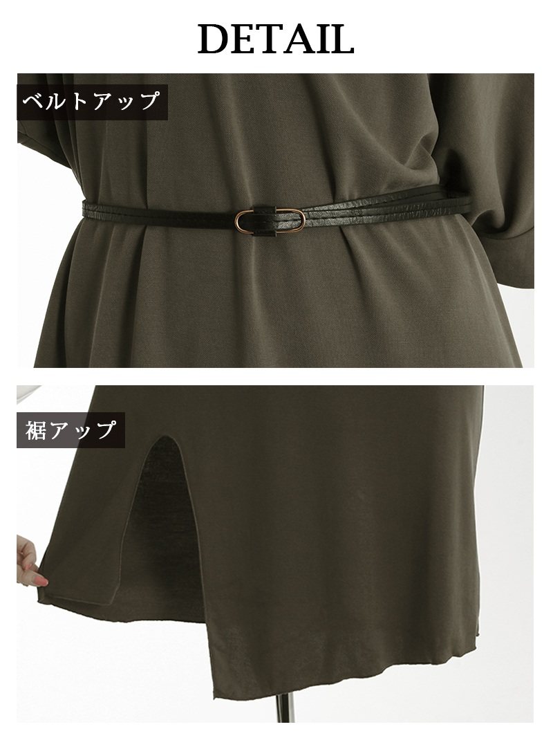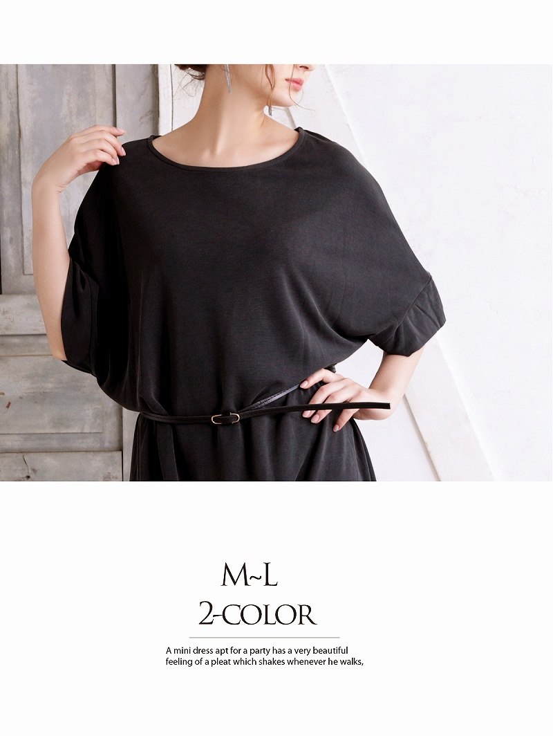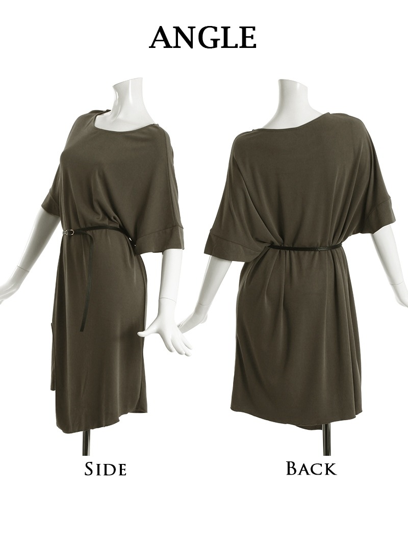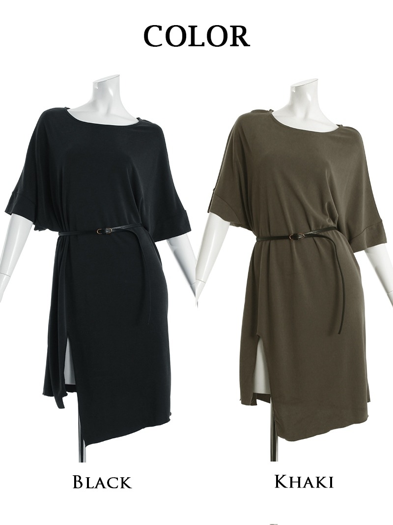ワンピース キャバドレス パーティードレス ドルマン ワンピース ベルト付き 無地 DaysPiece(M)(ブラック/カーキ)