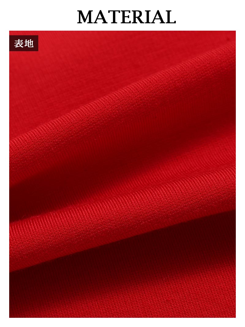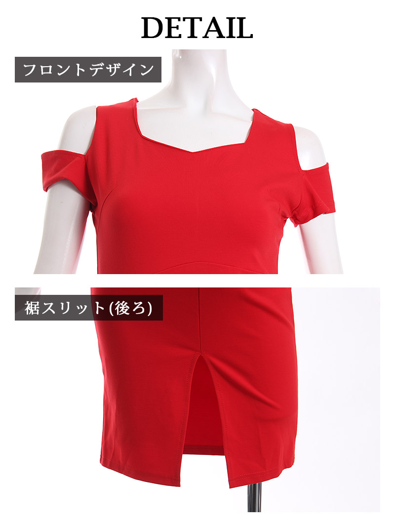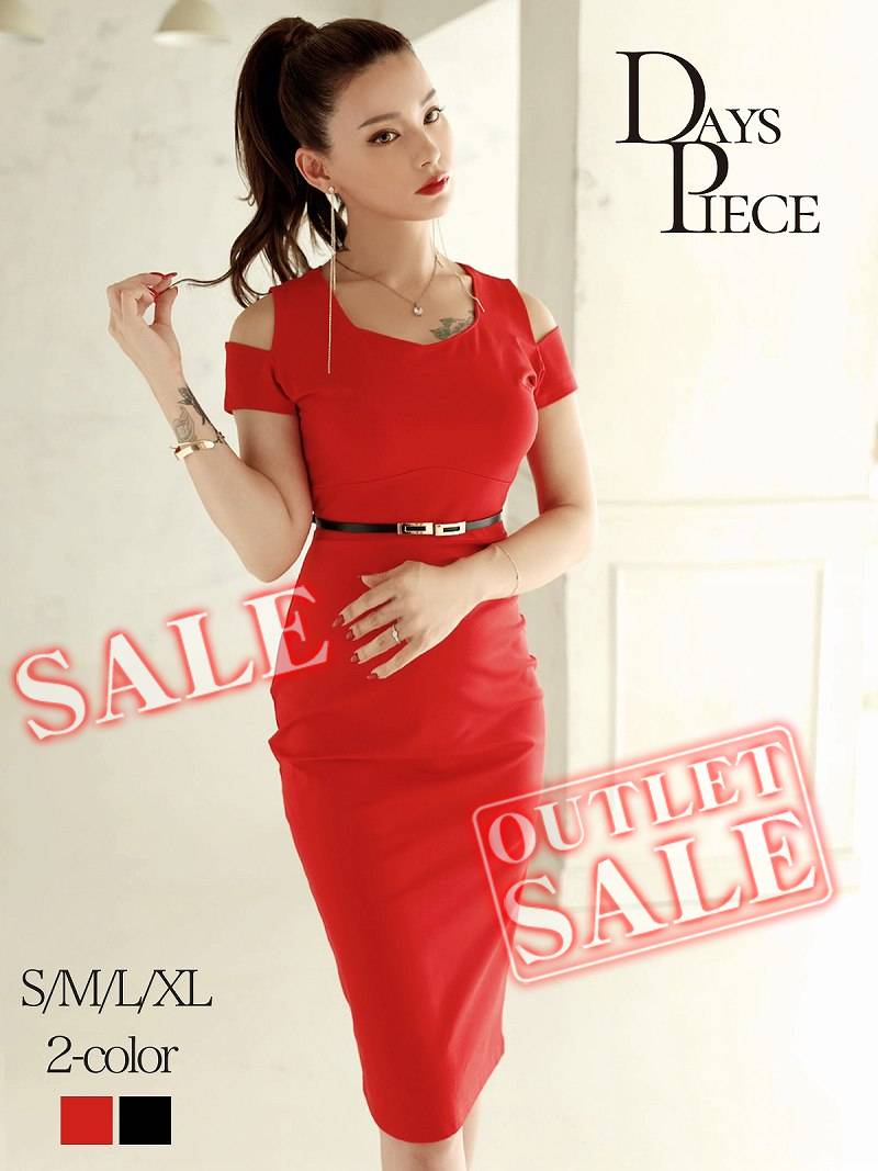 ワンピース キャバドレス ワンカラー オープンショルダー ボディライン ペンタゴンネック 膝丈 DaysPiece(S/M/L/XL(2L))(ブラック/レッド) [509796]