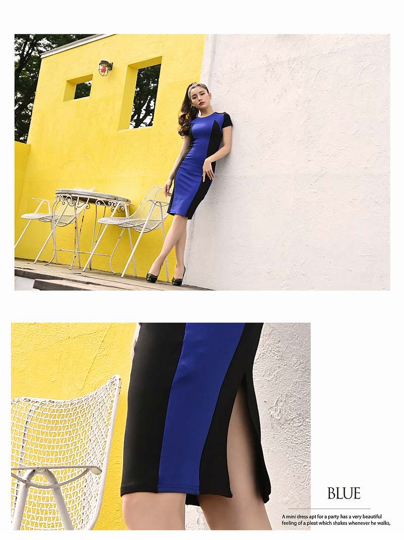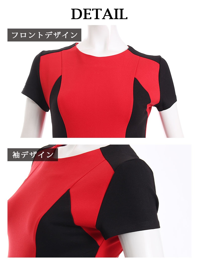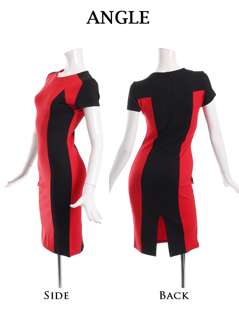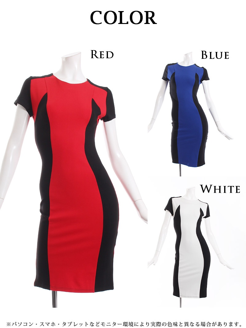 ワンピース キャバドレス バイカラー 半袖 シンプル タイト キャバドレス DaysPiece(S/M/L/XL(2L))(レッド/ブルー/ホワイト)