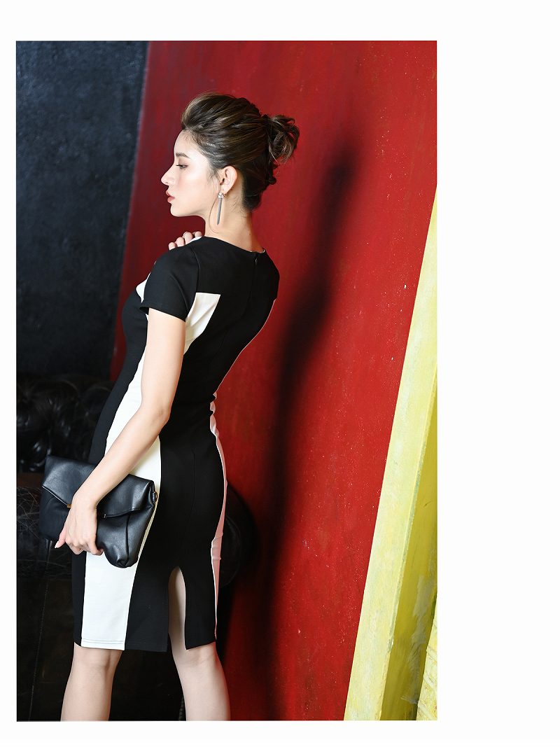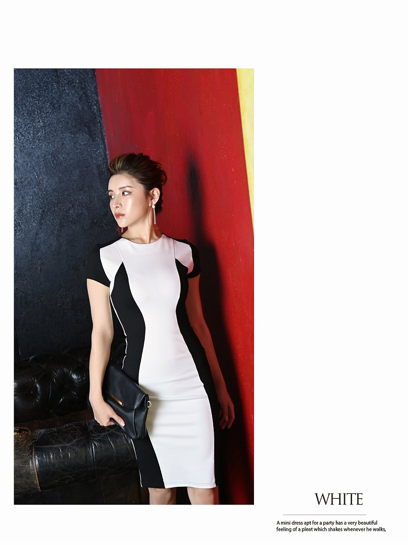☆バイカラーが魅力の美ボディラインを引き立てるキャバワンピース。タイトなシルエットで大人っぽさを演出し、シンプルなデザインが洗練された印象に。