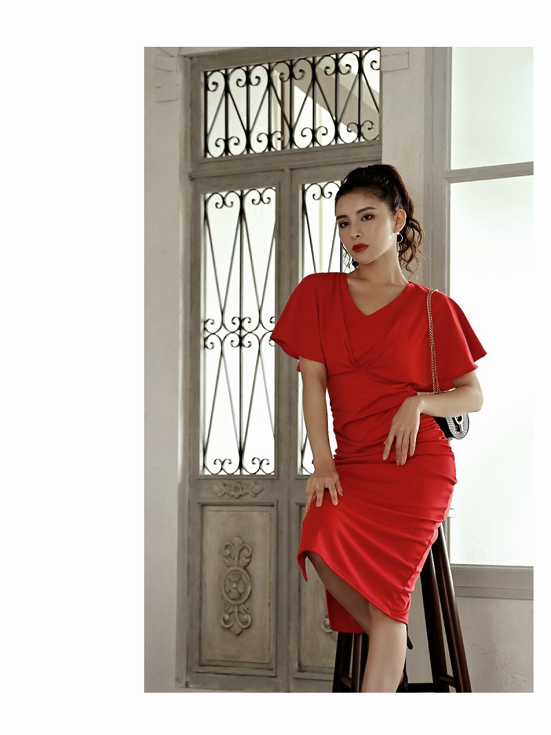 ☆ミディ丈のタイトなシルエットが魅力の韓国キャバワンピース。上品で大人の女性らしさを引き立てます。