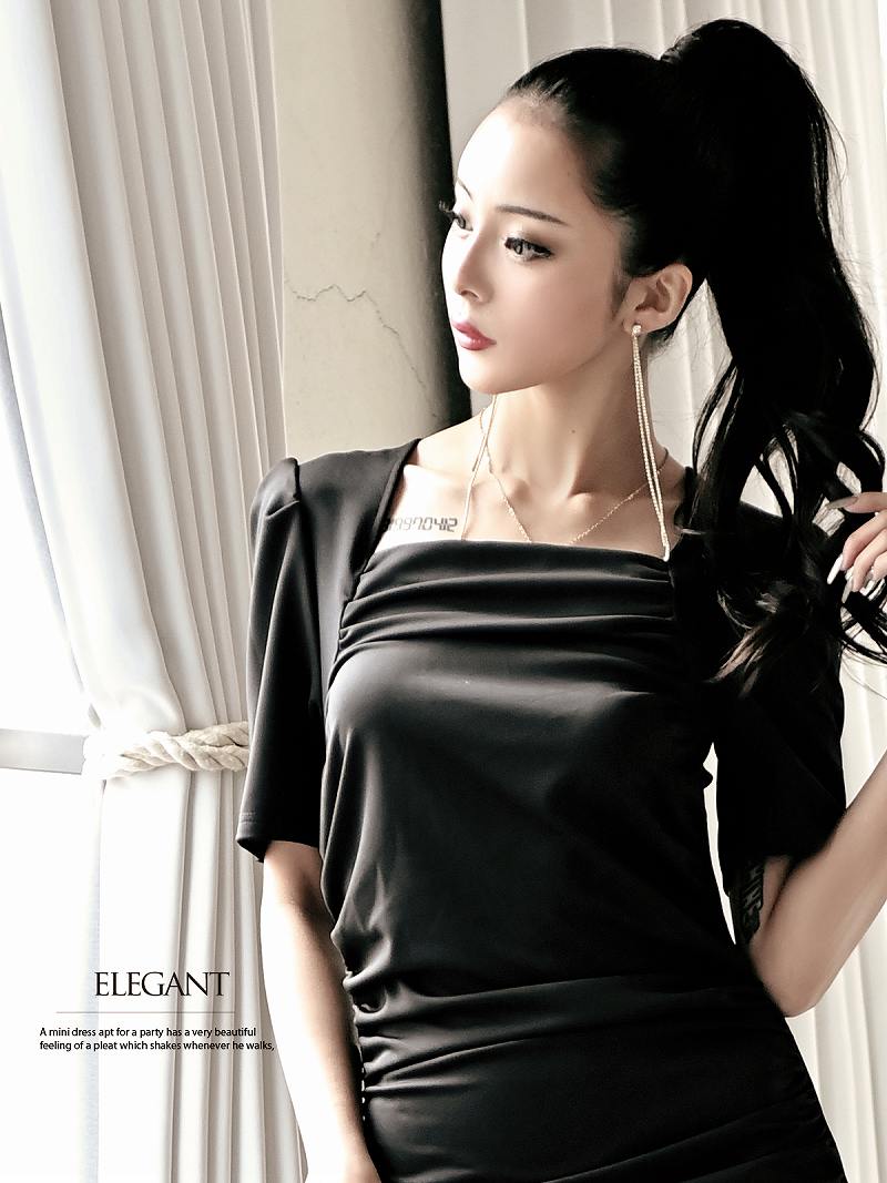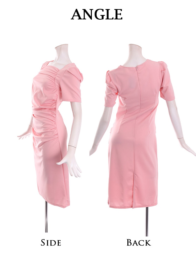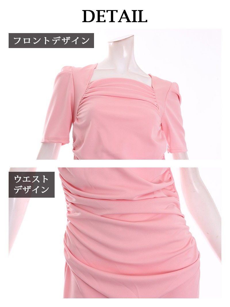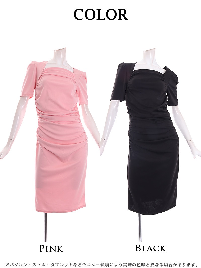 ワンピース キャバドレス パーティードレス 袖付 お呼ばれ ワンピース ギャザー DaysPiece(M/L)(ブラック/ピンク)