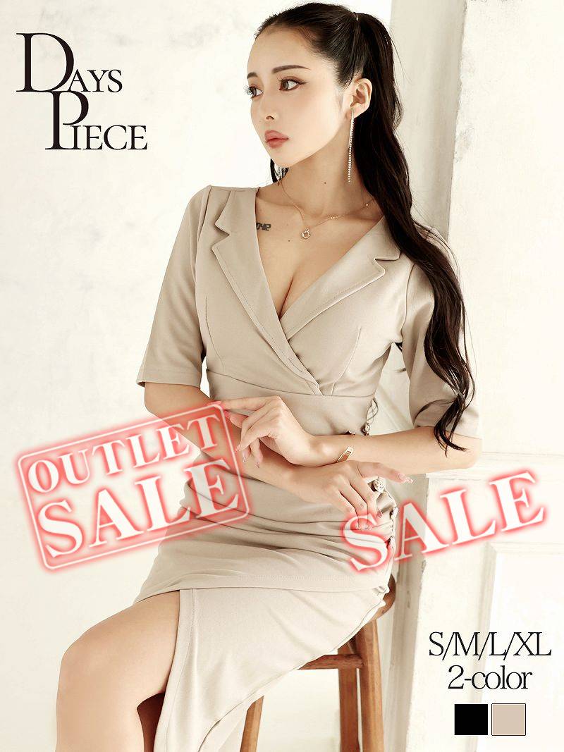 ワンピース キャバドレス セレブ カシュクール 膝丈 キャバドレス 大人 DaysPiece(S/M/L/XL(2L))(ブラック/ベージュ) [509829]